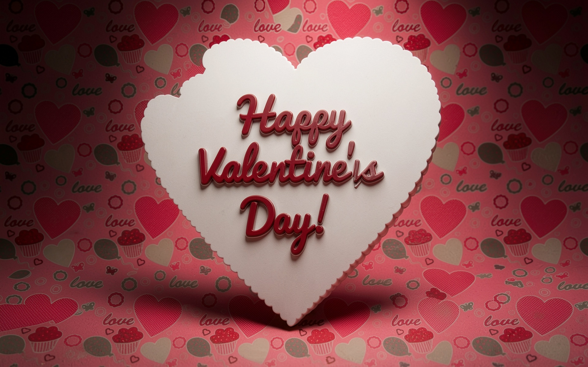 Белое сердце с надписью Happy Valentine's Day