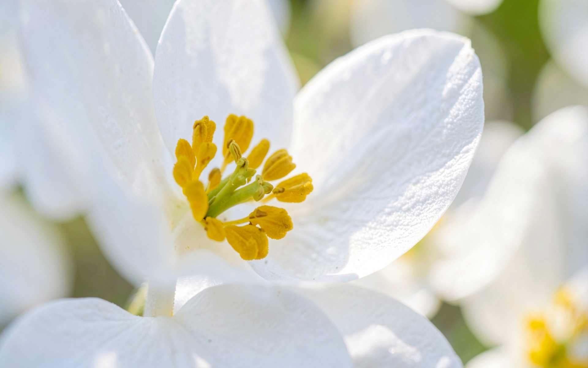 Белый цветок с желтой сердцевиной макро