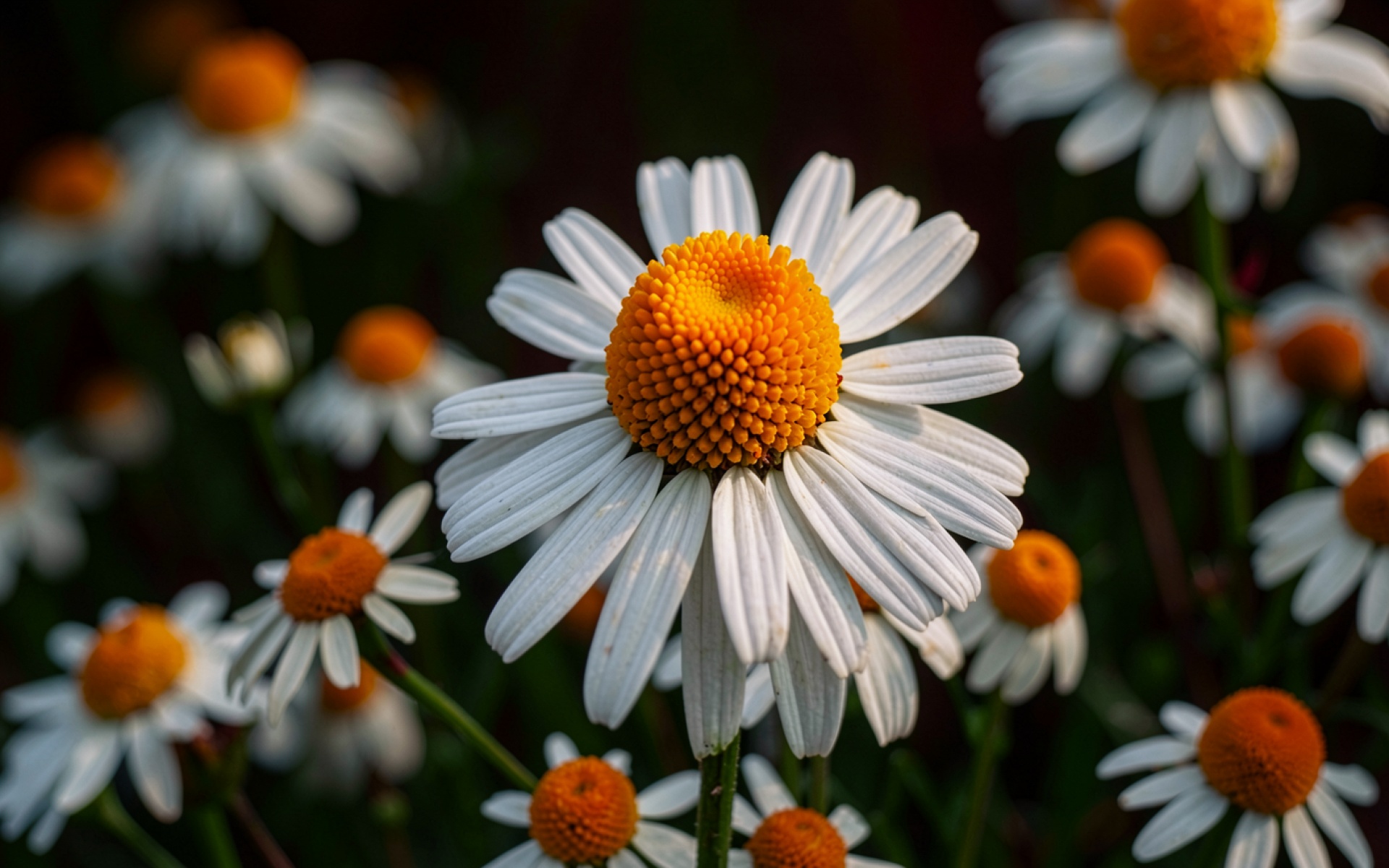 Белые ромашки с желтой сердцевиной в саду