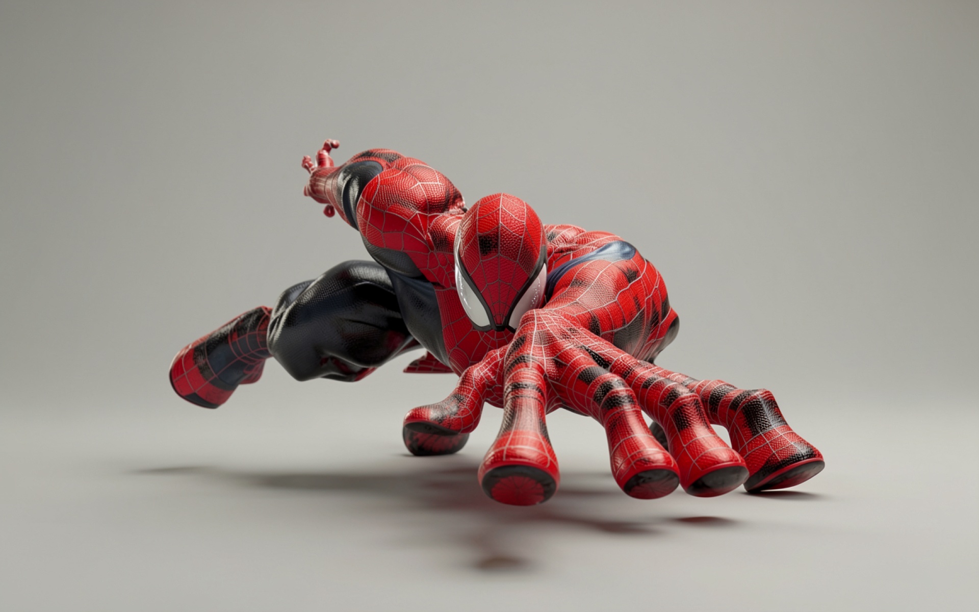 Человек-паук в красном костюме на сером фоне