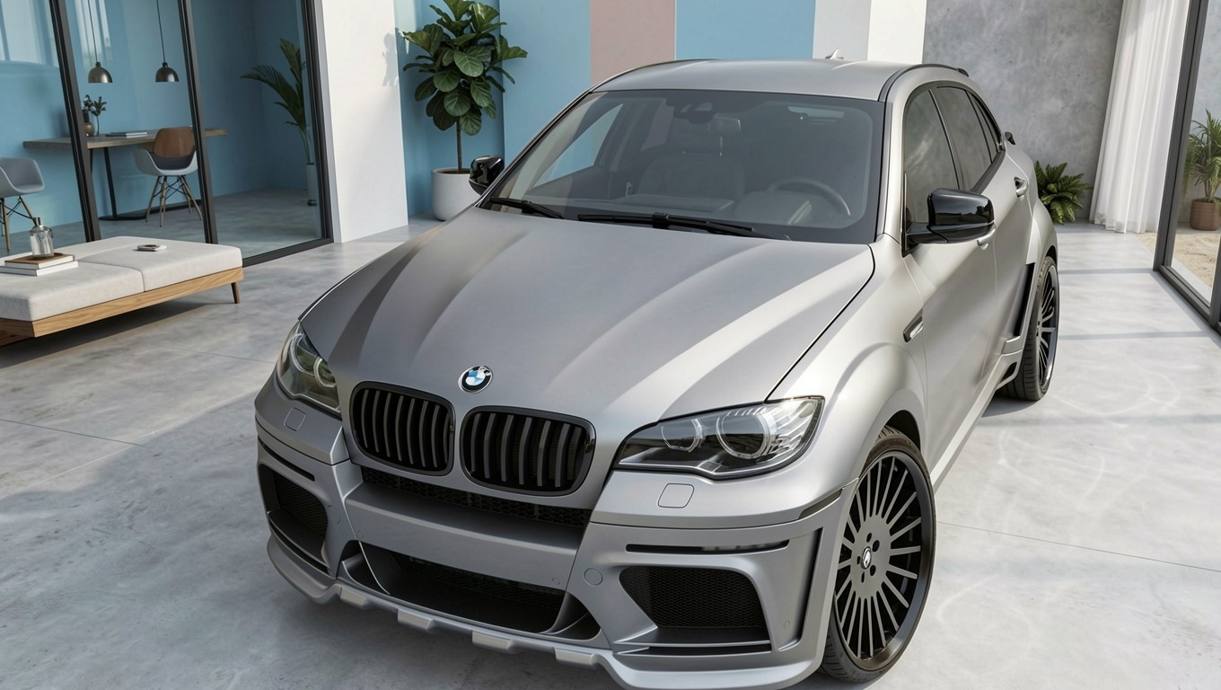 Серый матовый BMW X6 в современном интерьере