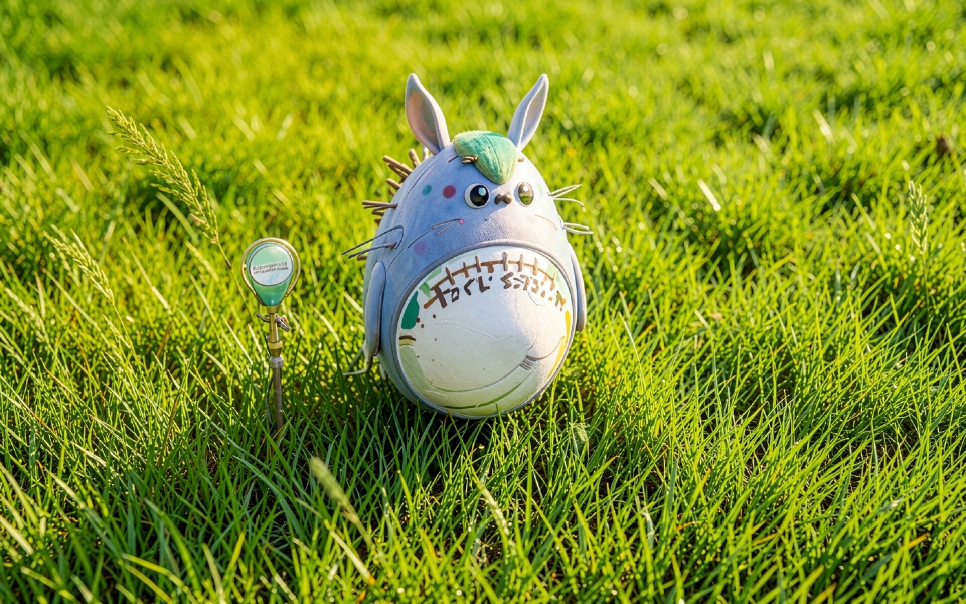Серый робот в зеленой траве при солнечном свете