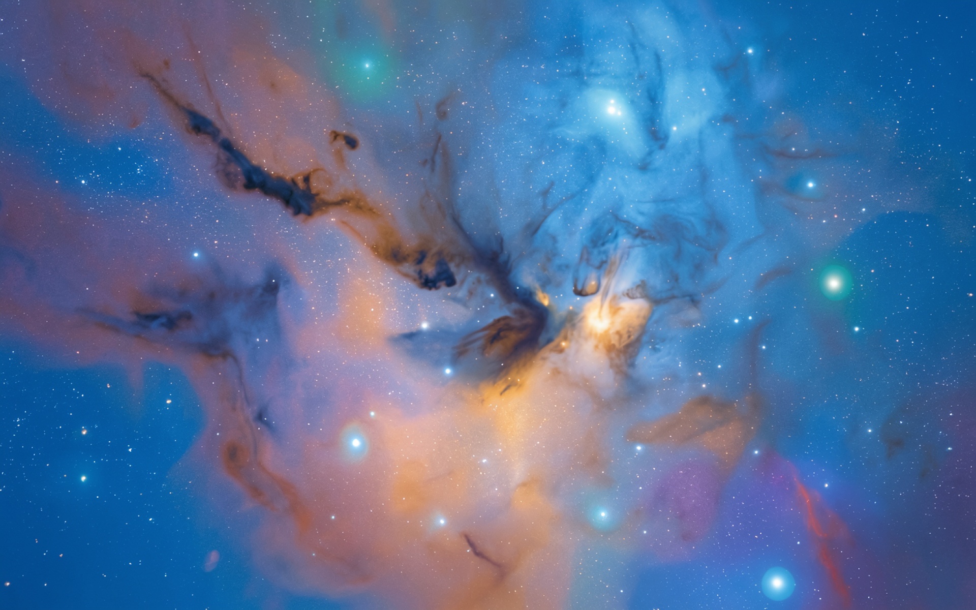 Космическая туманность синего и золотого цвета