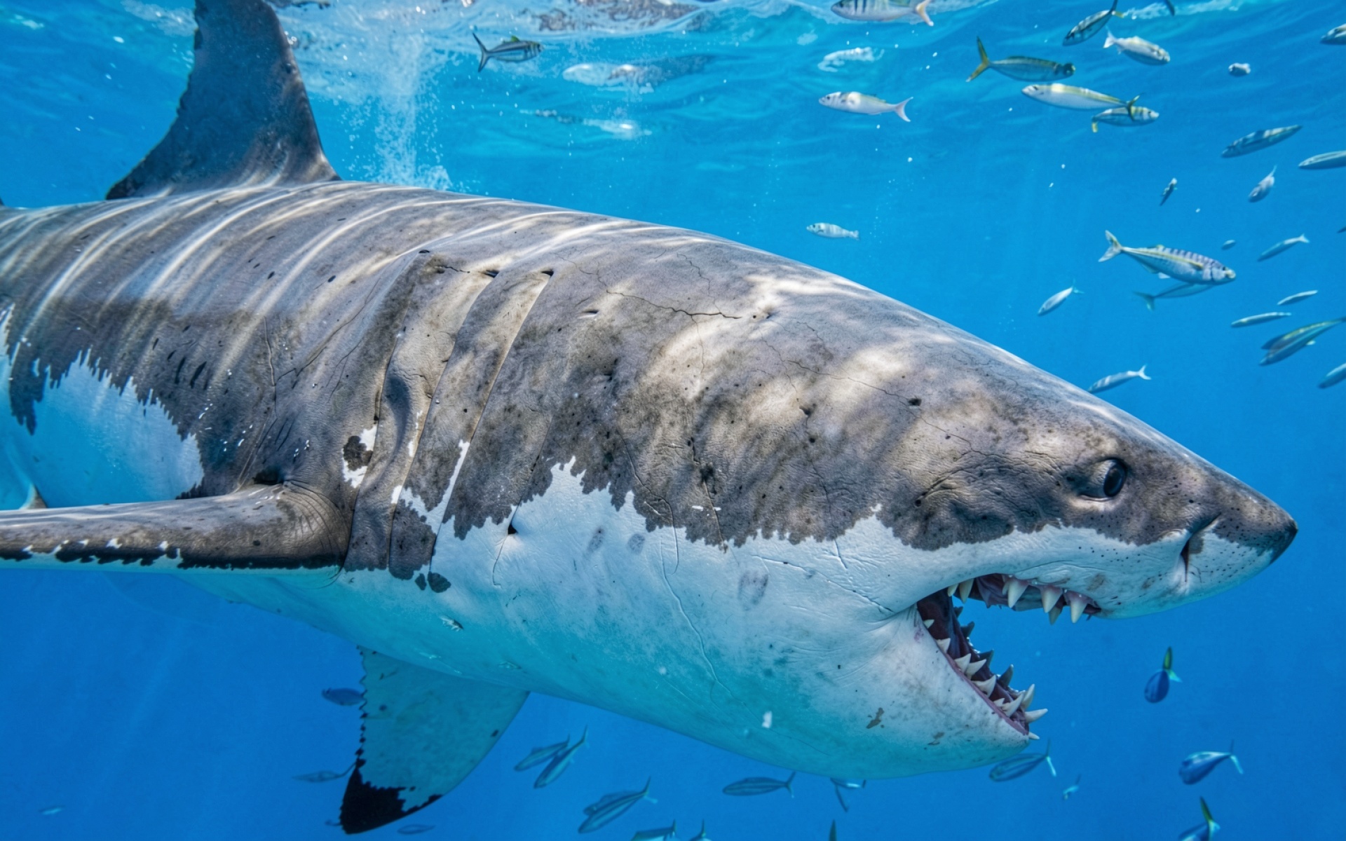 Белая акула в синей океанской воде