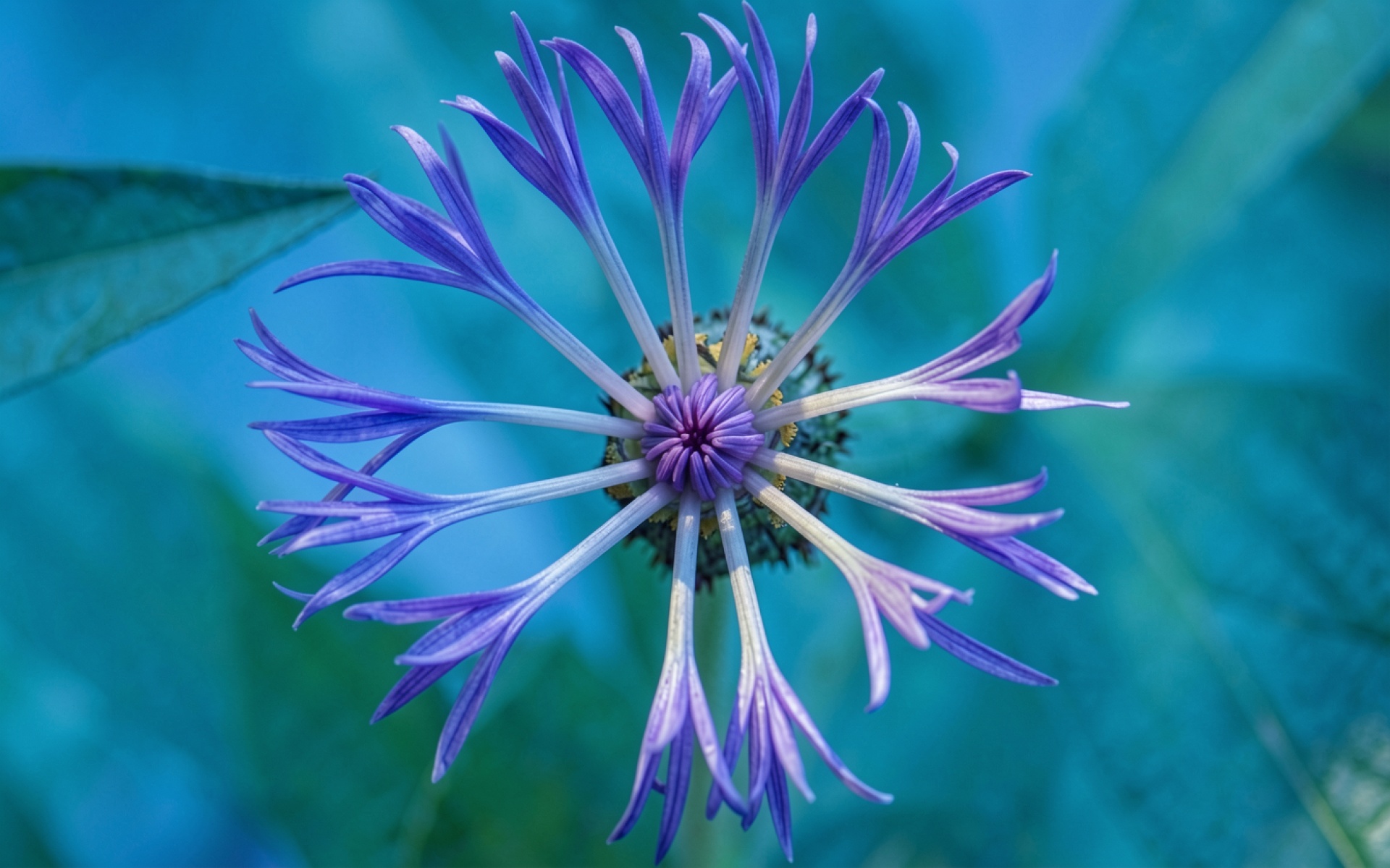 Фиолетовый цветок с тонкими лепестками на синем фоне