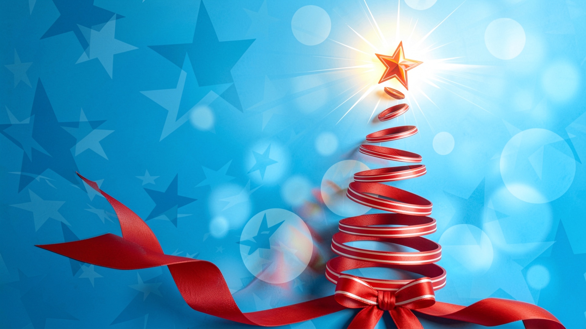Красная лента в форме елки на синем фоне