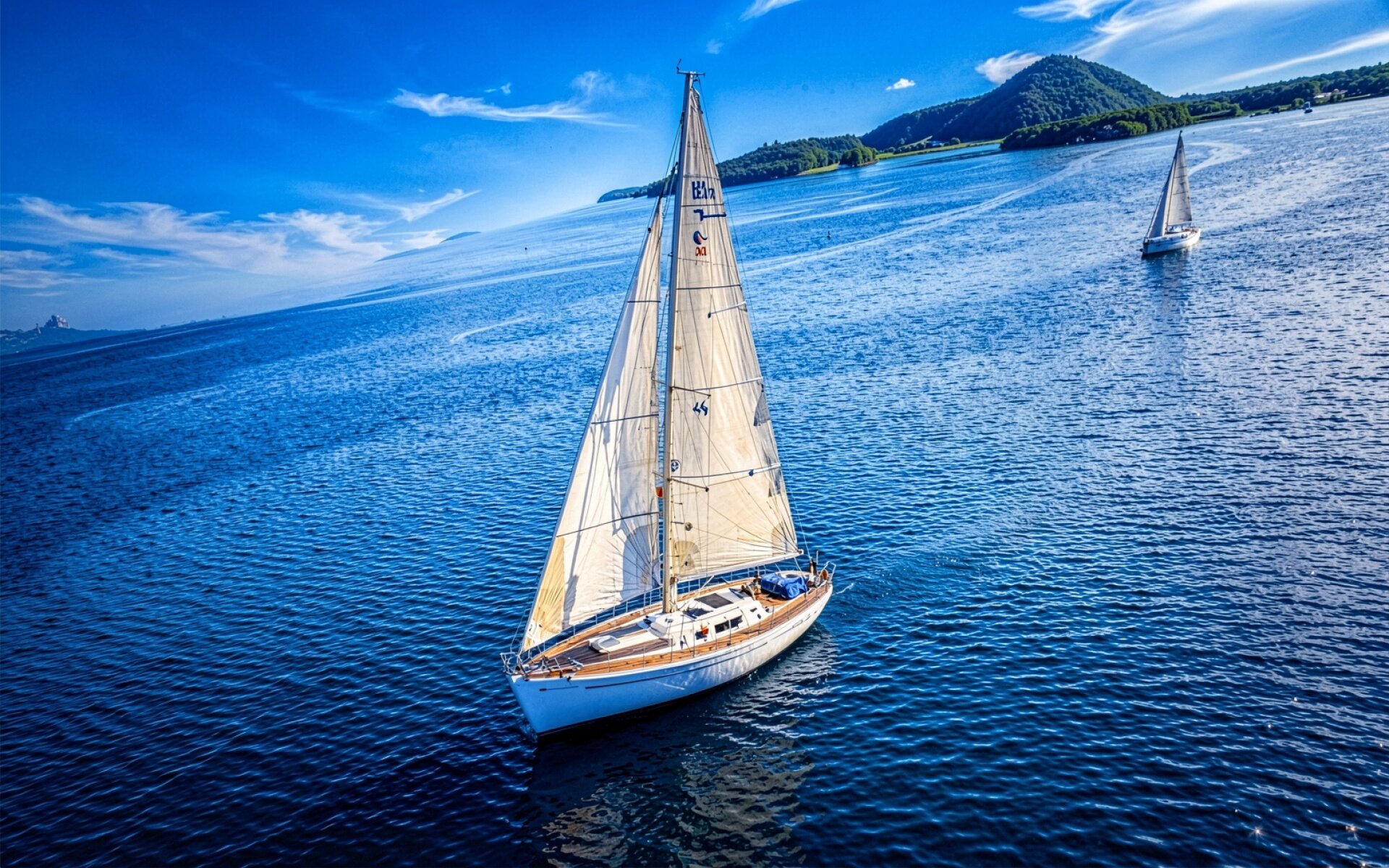 Белый парусник в синем море солнечный день