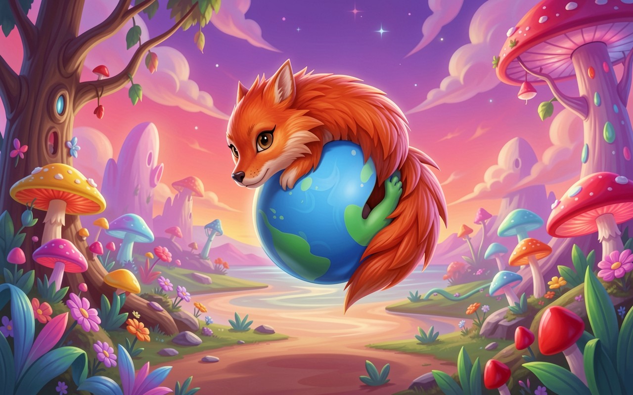 Рыжий лис обнимает планету Земля в сказочном лесу