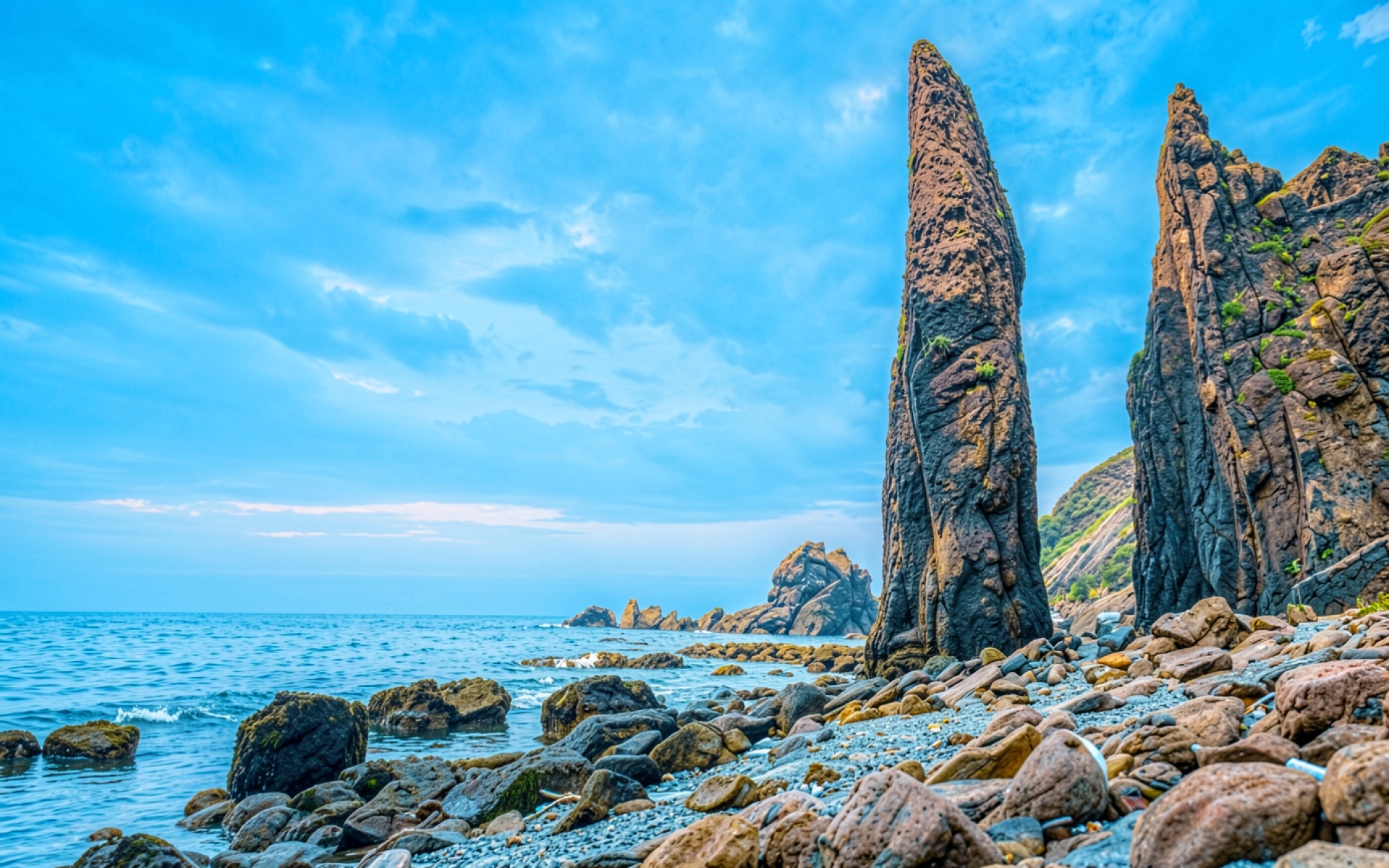 Скалистые утесы на берегу синего моря