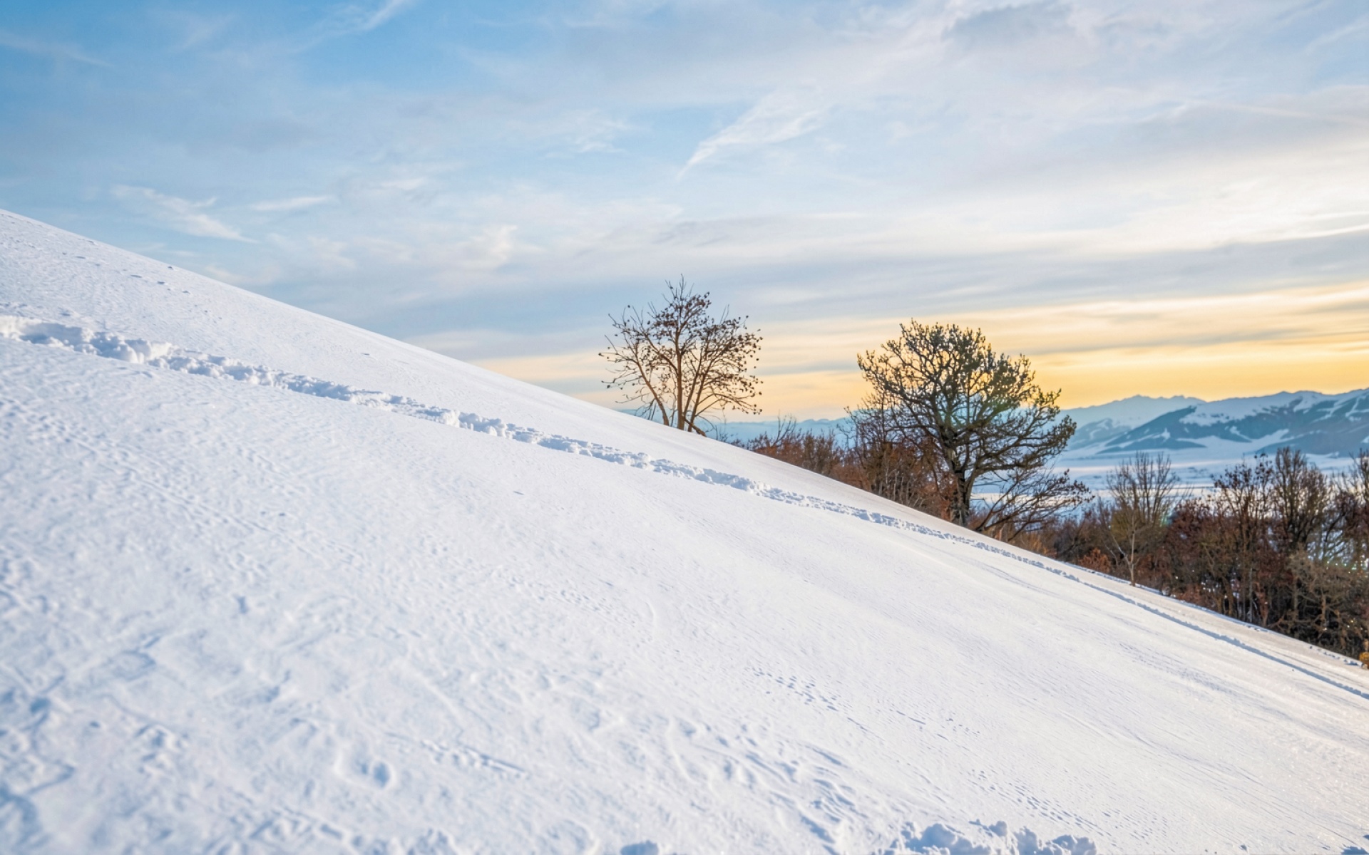 Зимний пейзаж с заснеженным склоном и деревьями