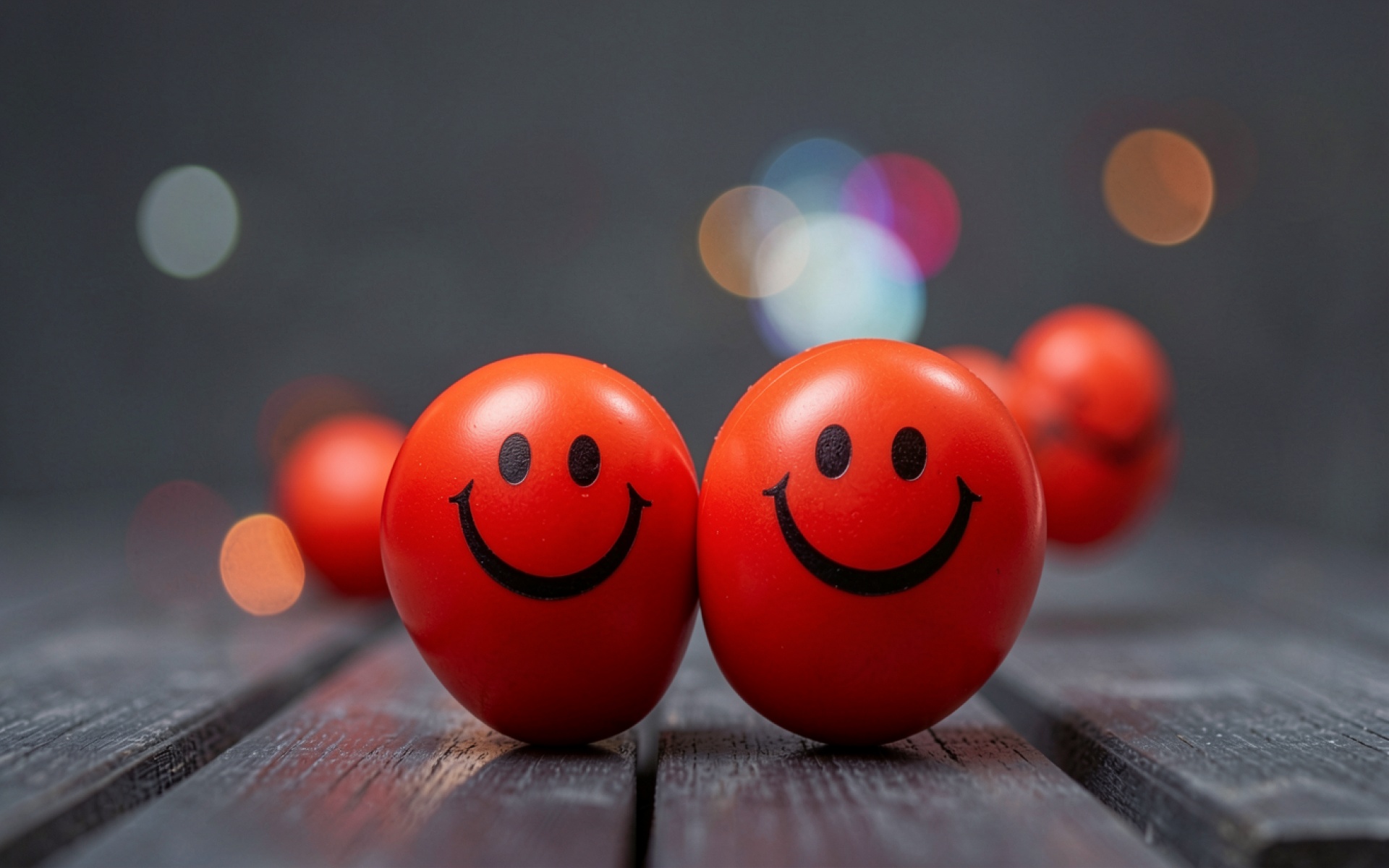 Красные смайлики на темном деревянном фоне