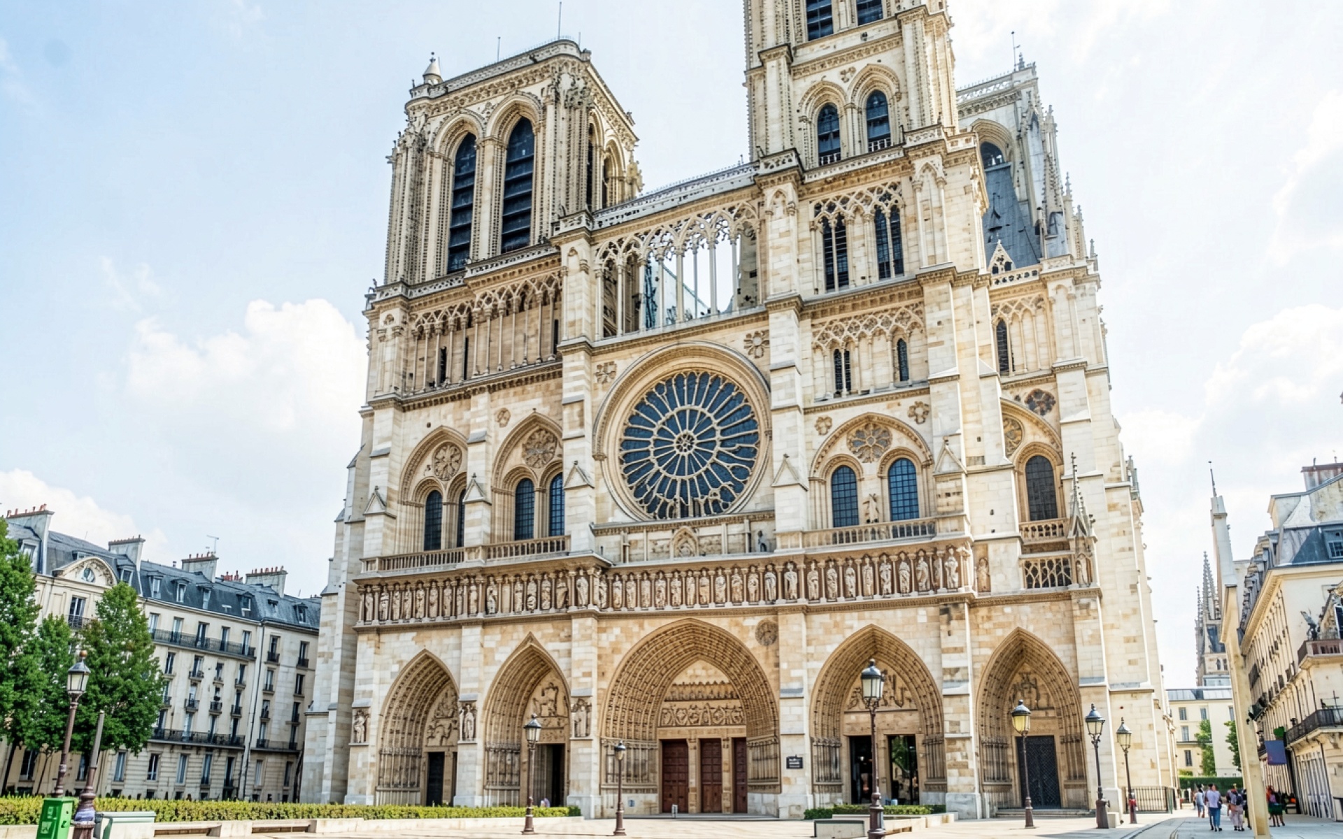 Кафедральный собор Нотр-Дам светлый дневной вид