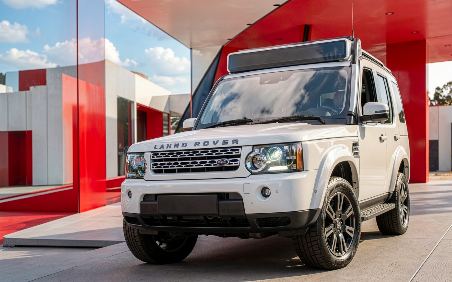 Белый Land Rover Defender современный городской стиль