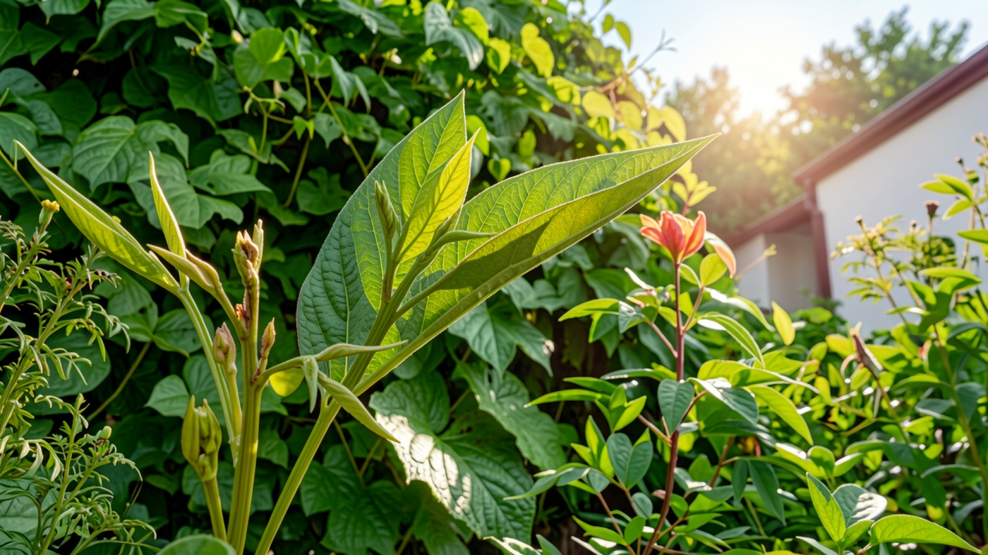 Зеленый лист растения в солнечном саду