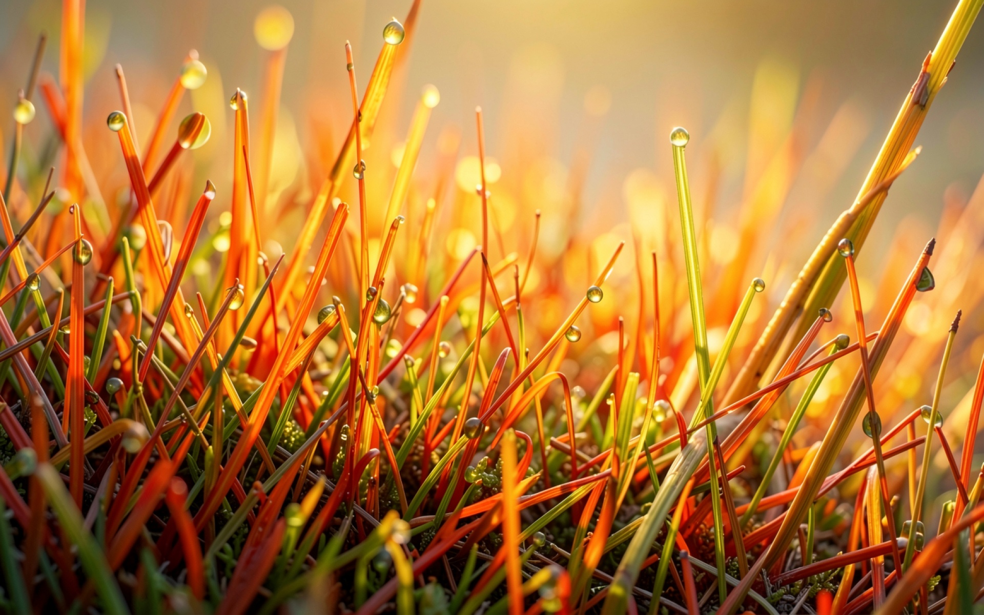Осенняя трава с каплями росы в солнечный день