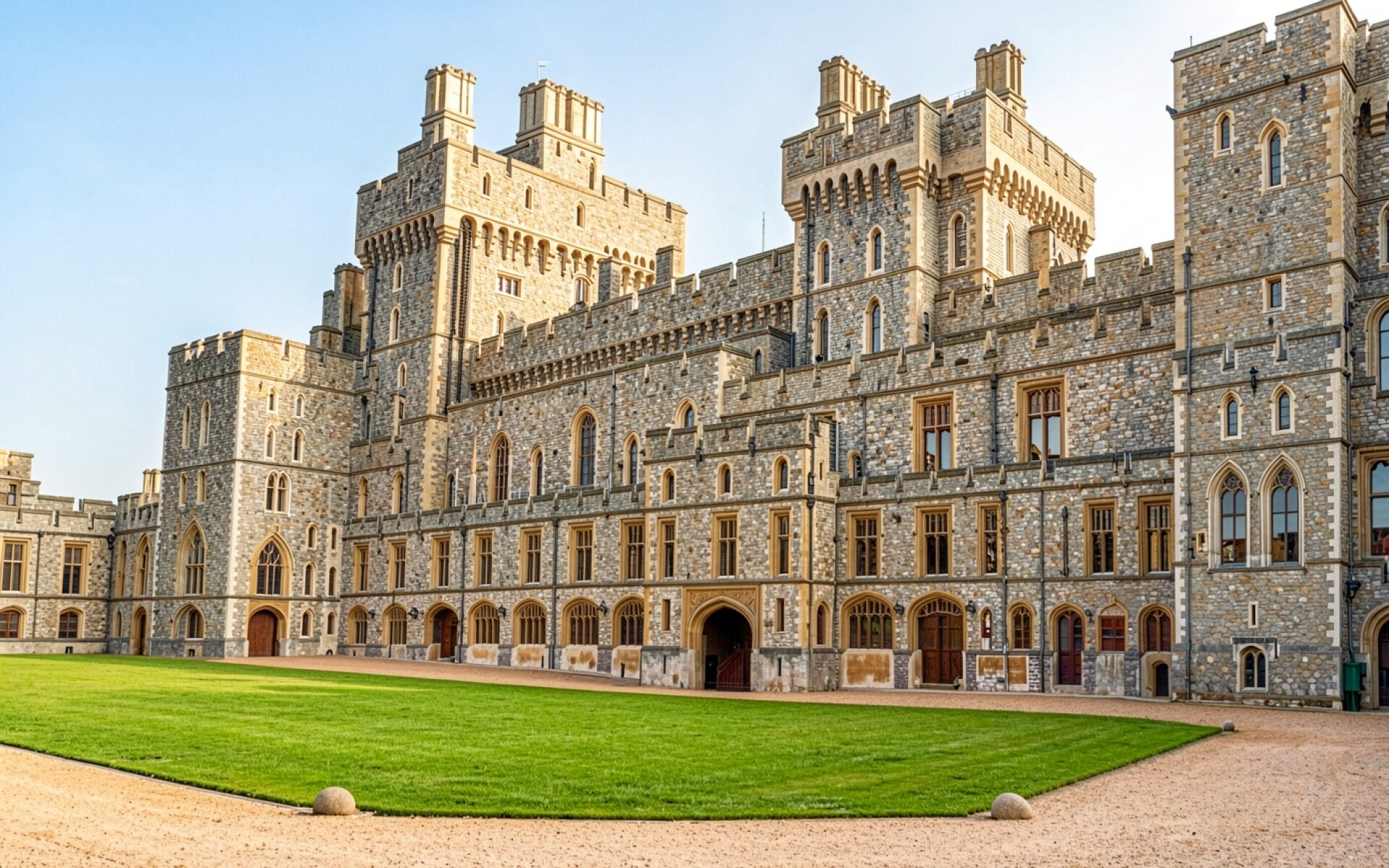 Средневековый замок из серого камня солнечным днем