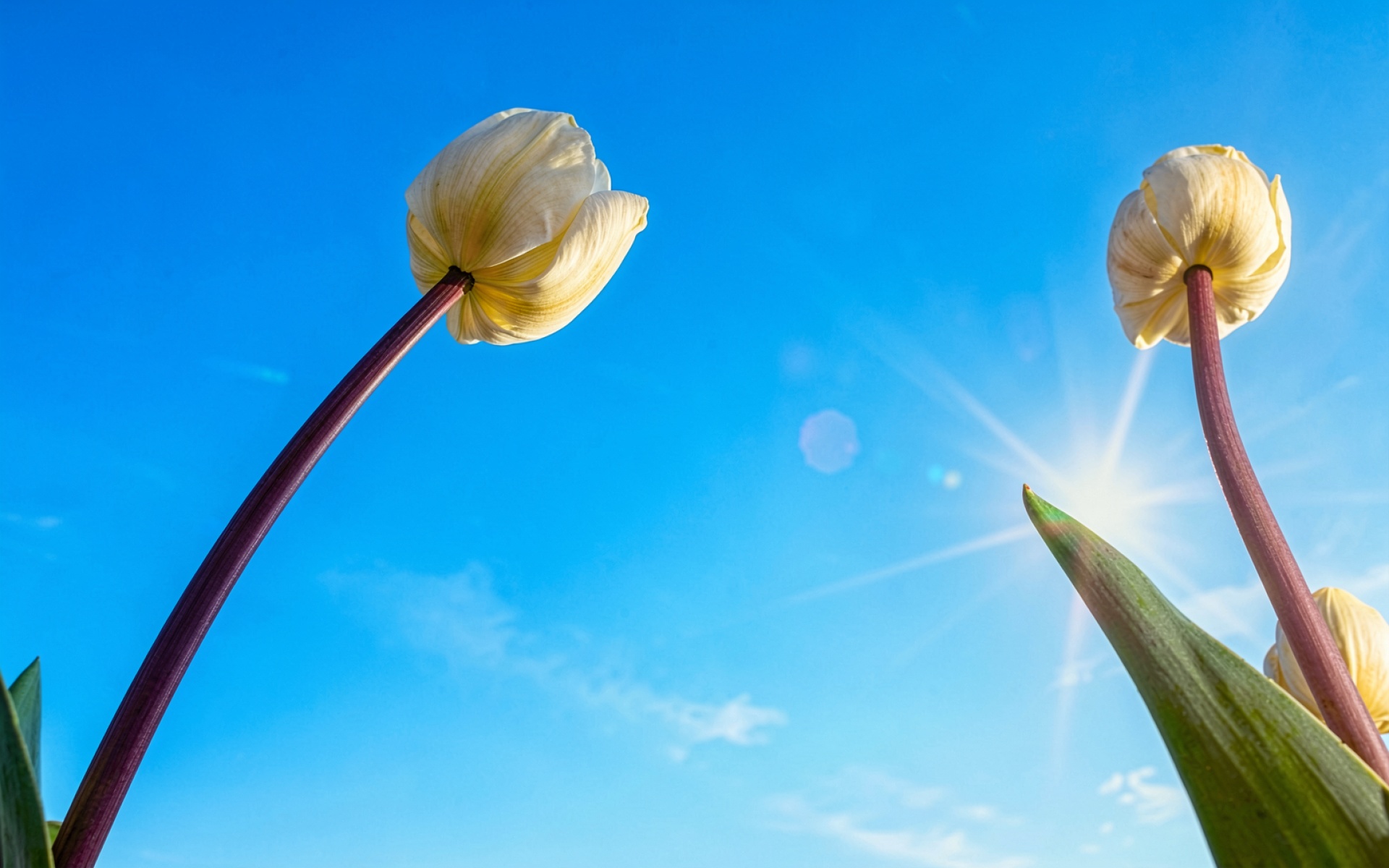 Белые тюльпаны под ярким солнечным небом