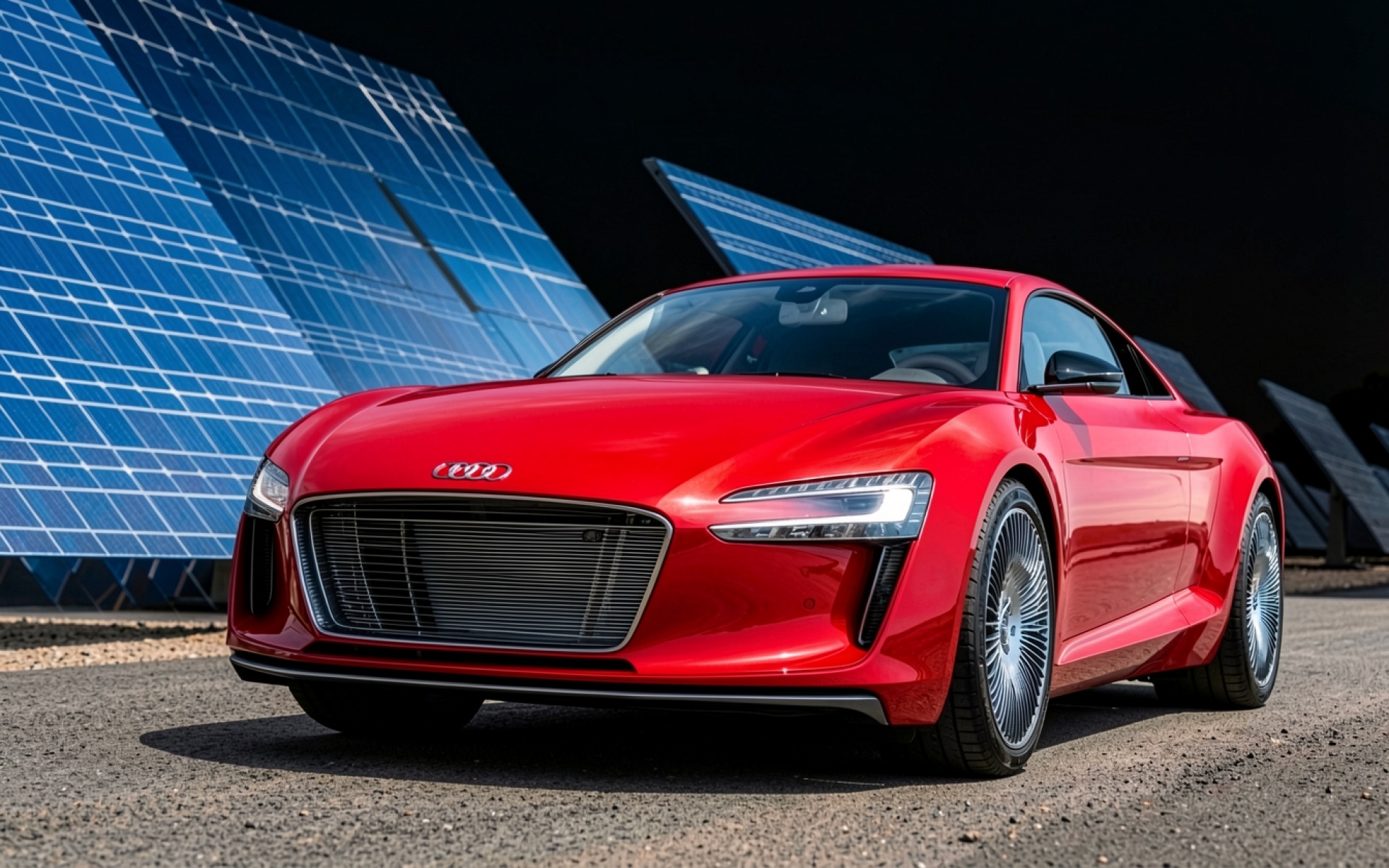 Красный концепт-кар Audi на фоне солнечных панелей