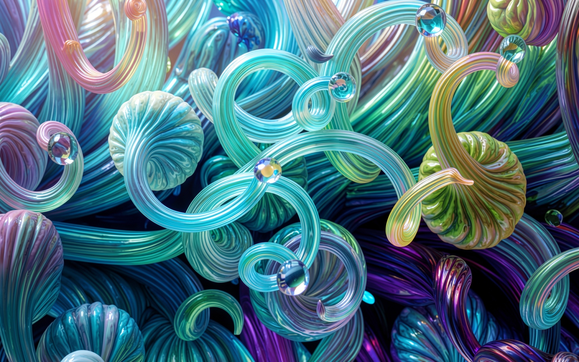 Абстрактные стеклянные нити в радужных неоновых тонах