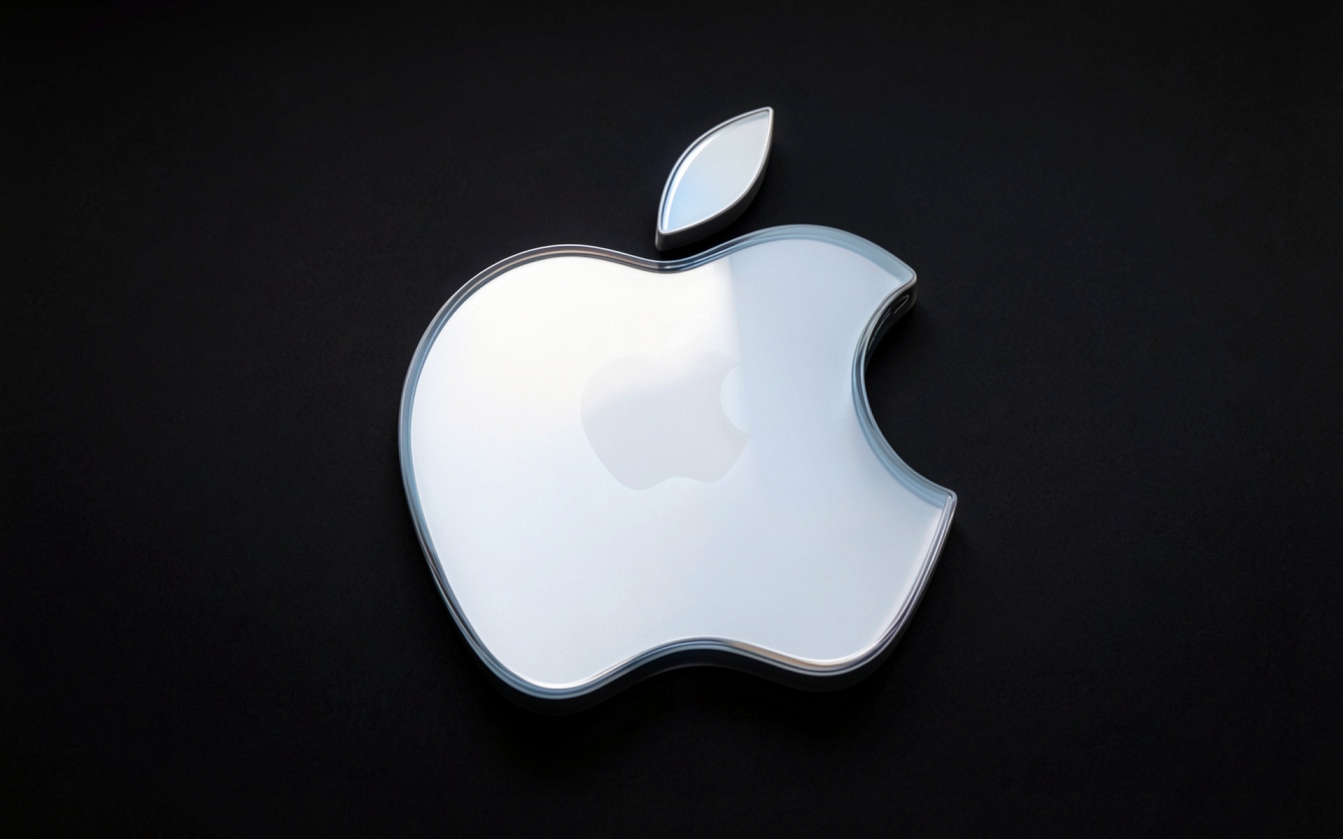 Стеклянный логотип Apple на черном фоне