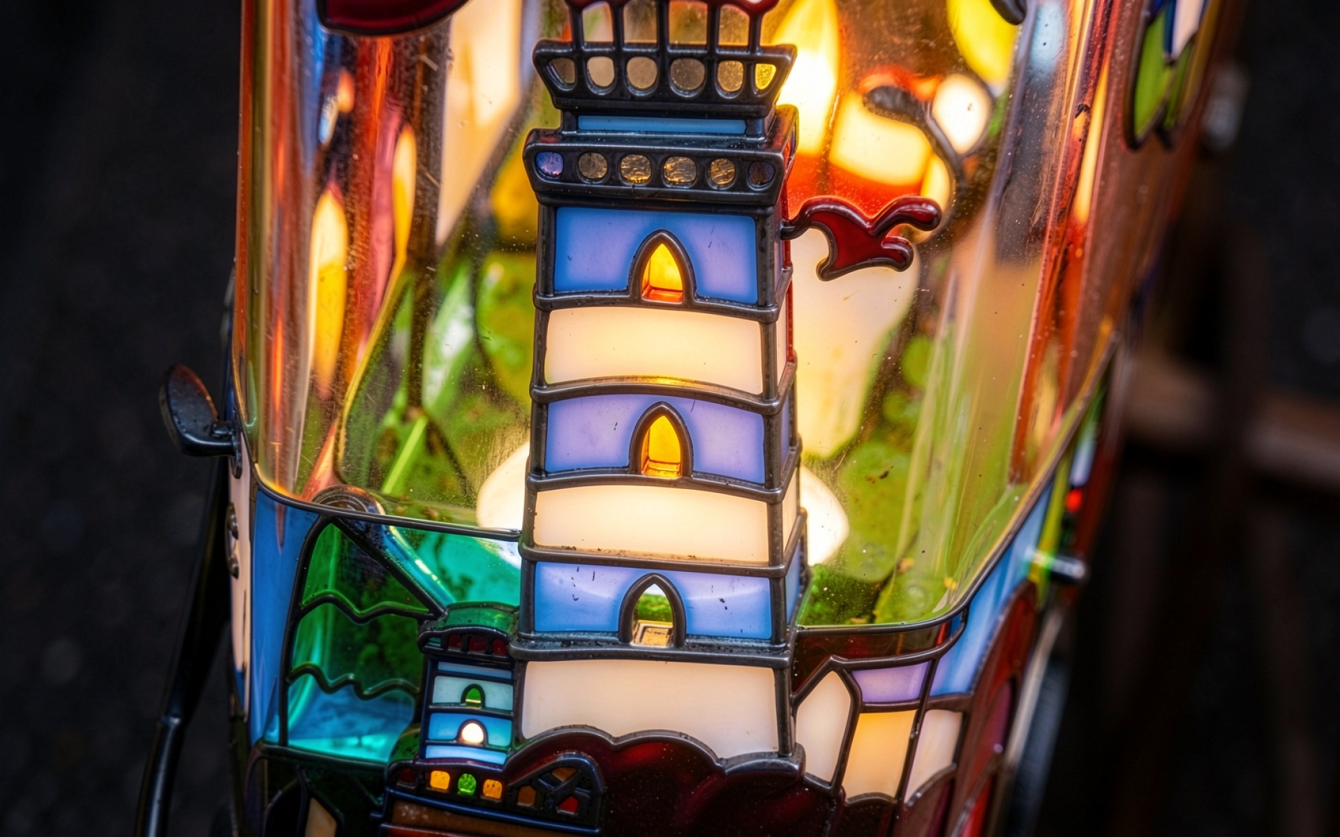 Стеклянный маяк в стиле витража с подсветкой