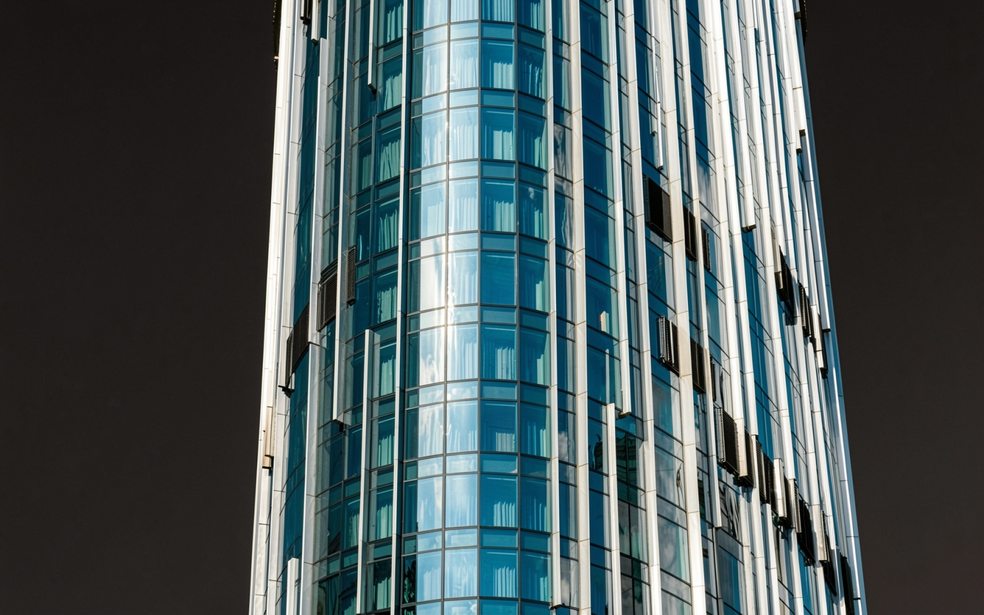 Стеклянный небоскреб синего цвета в минимализме
