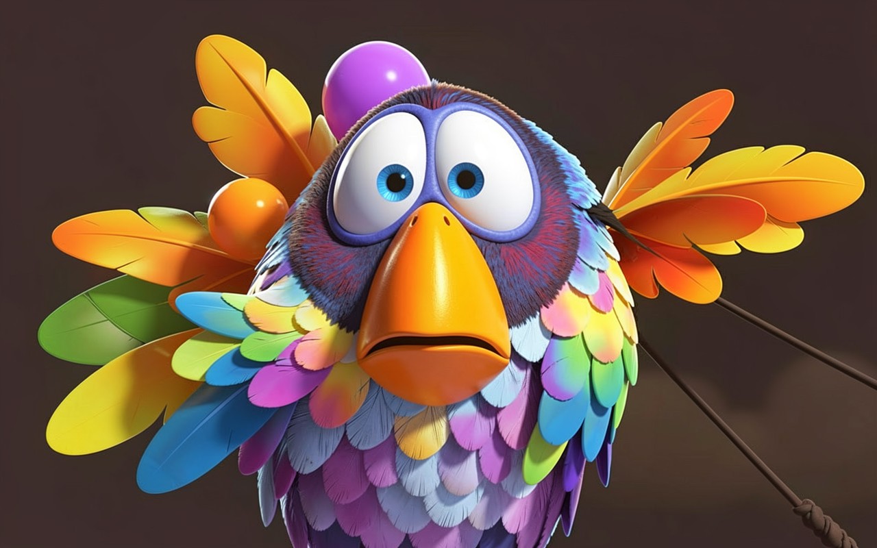 Разноцветный 3D попугай в мультяшном стиле