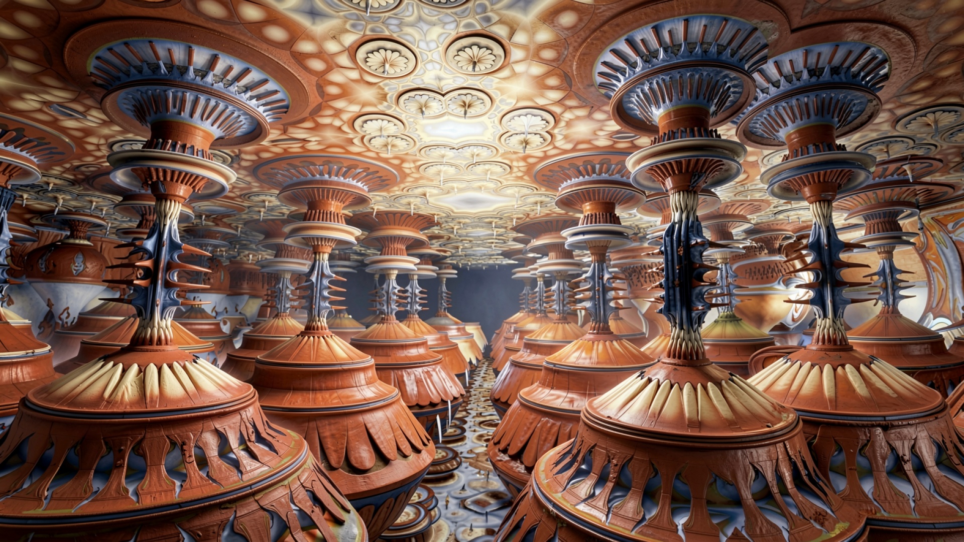 Сюрреалистичный город терракотовых башен в стиле биоморфизма