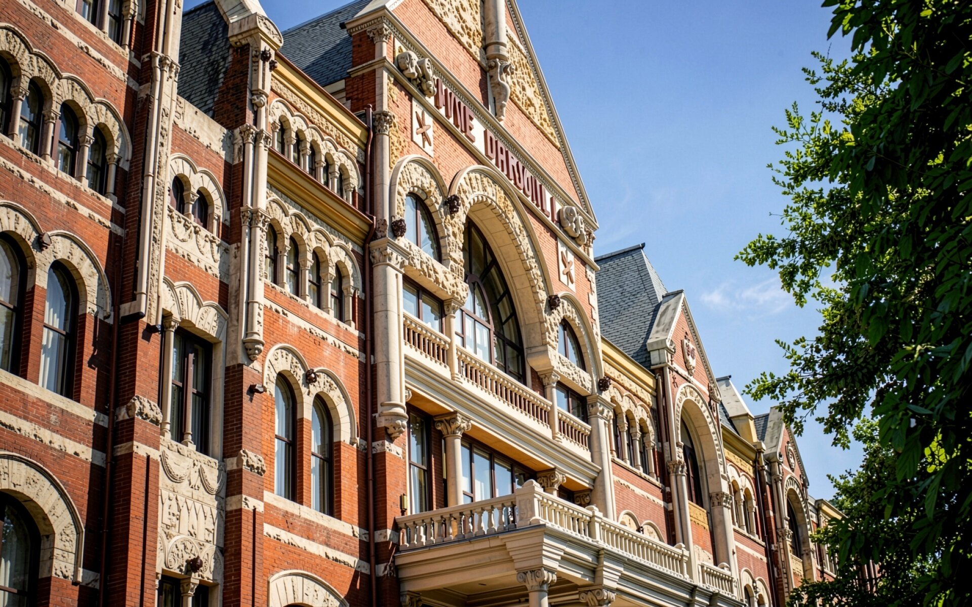 Кирпичное здание университета в стиле неоромантизм