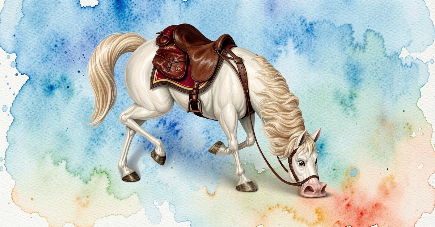 Белая лошадь в седле акварельный стиль