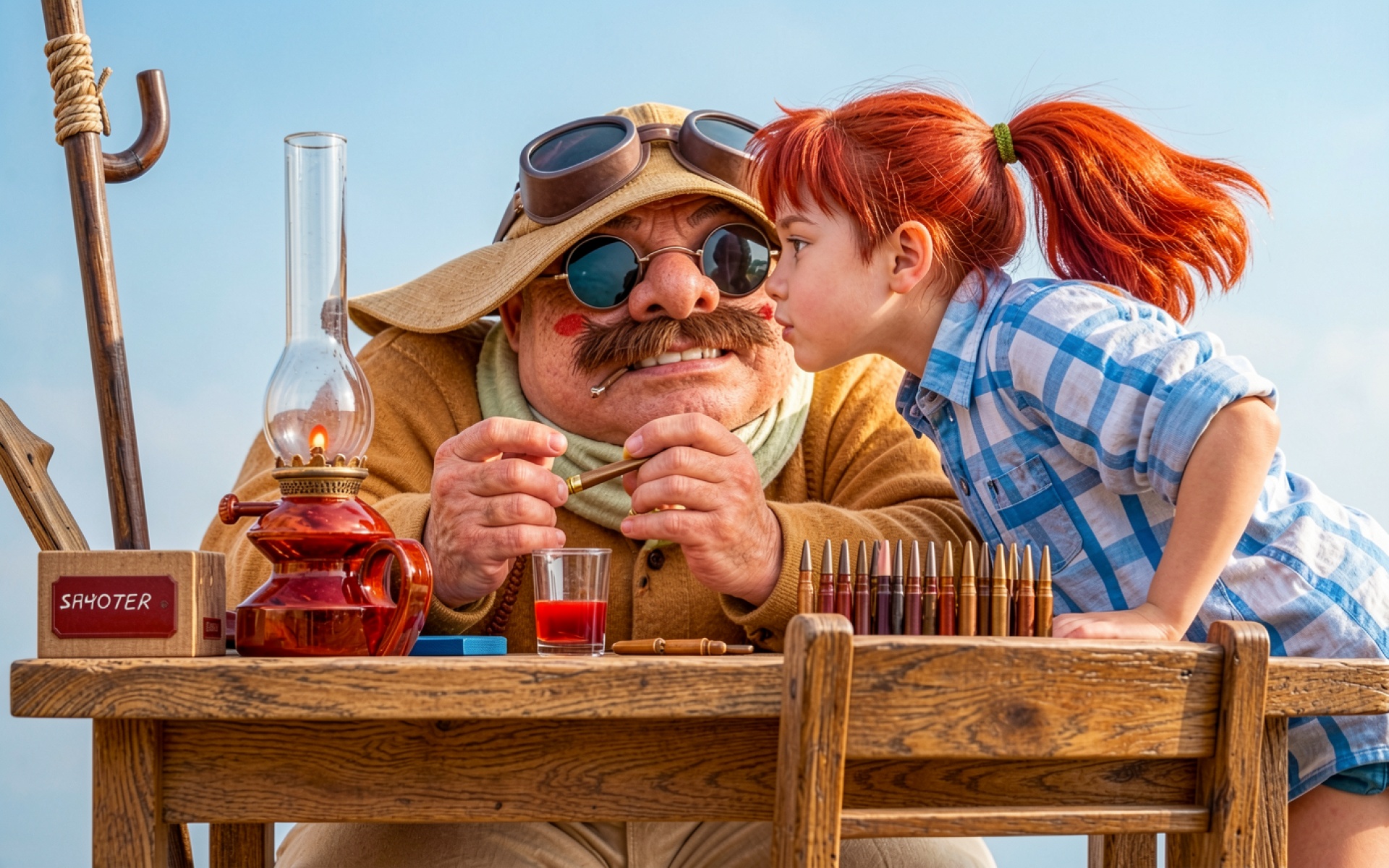 Мужчина и девочка за деревянным столом