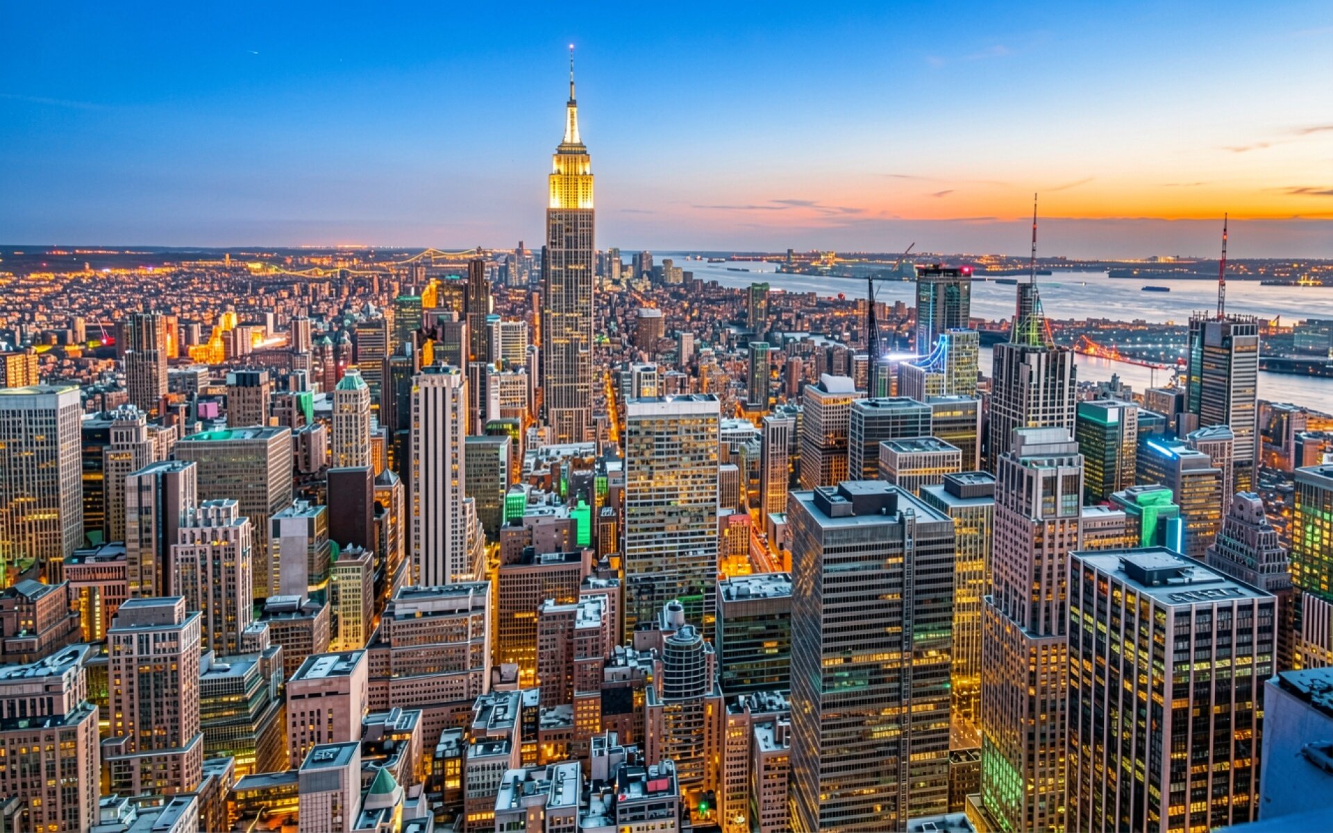 Панорама Нью-Йорка с Эмпайр-стейт-билдинг в сумерках