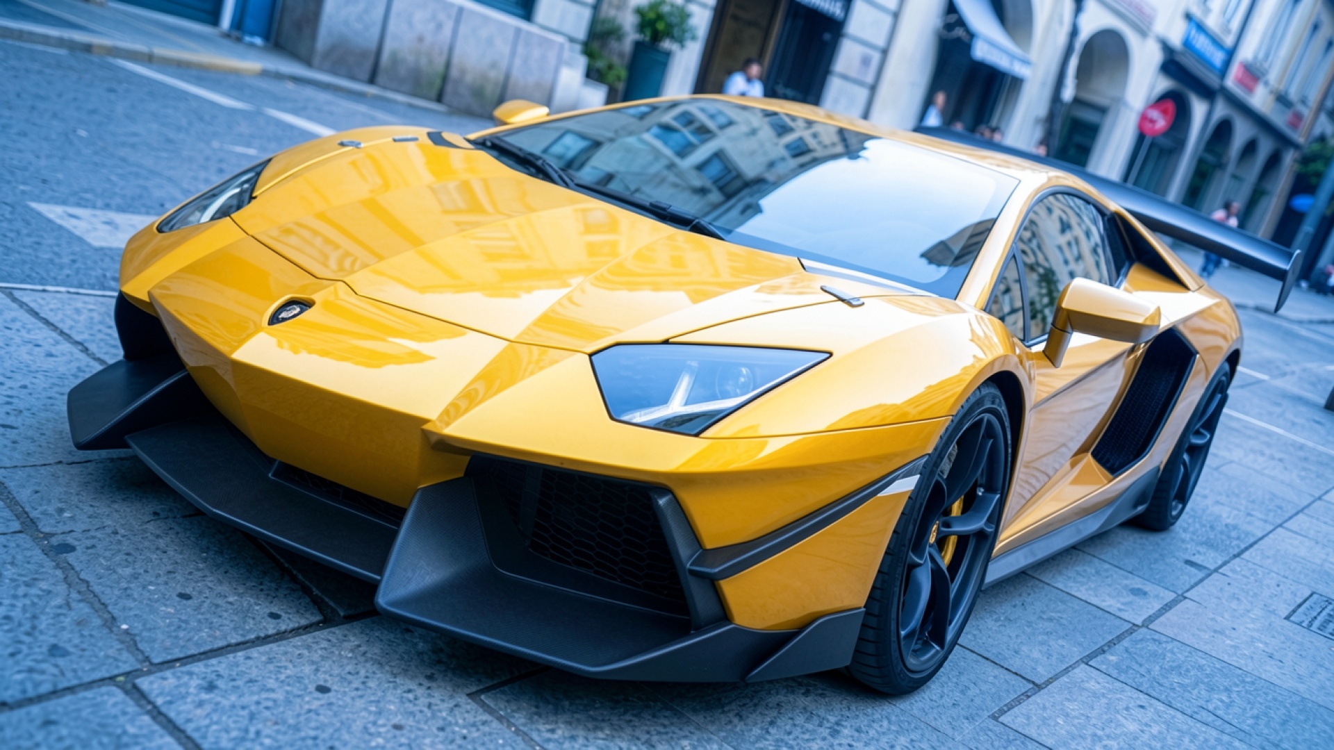 Желтый суперкар Lamborghini на городской улице