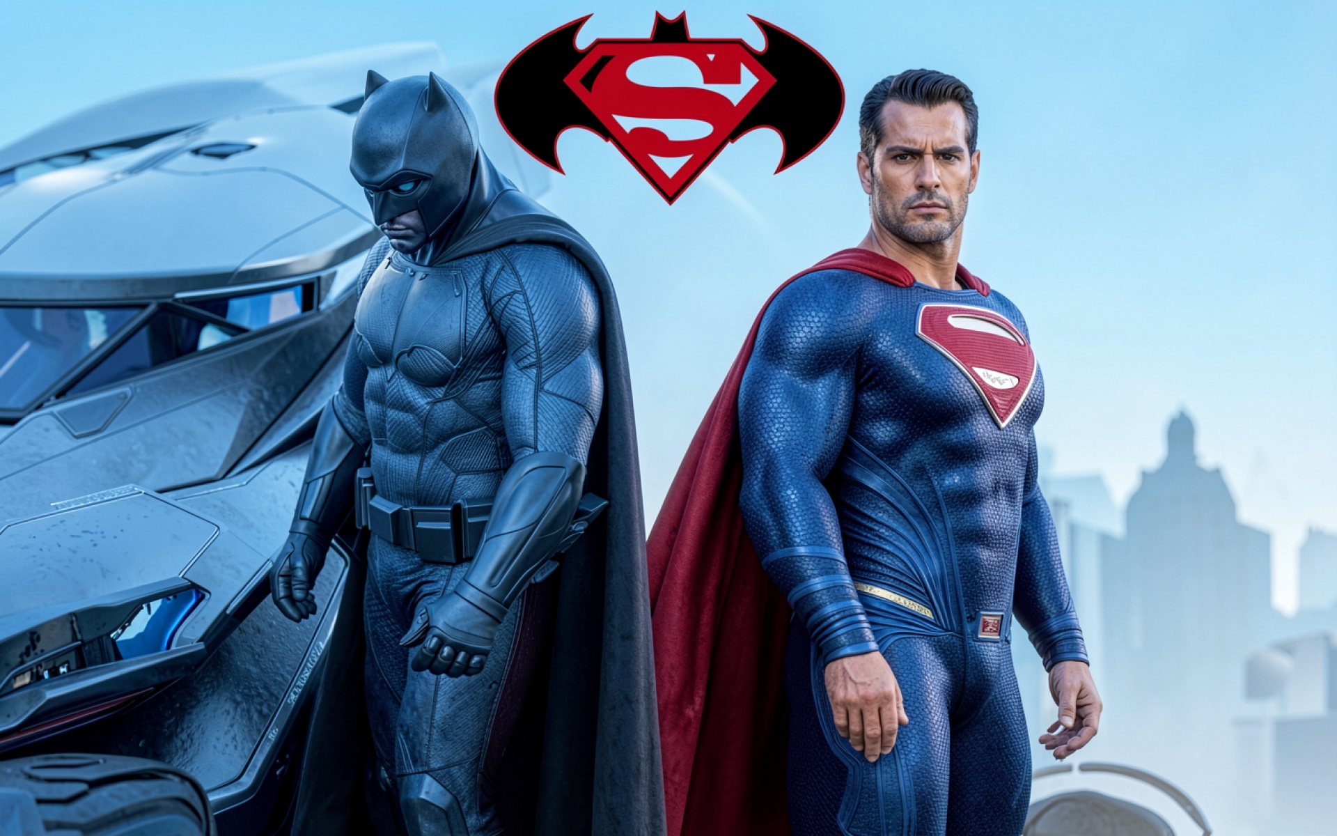 Бэтмен и Супермен в синих тонах города
