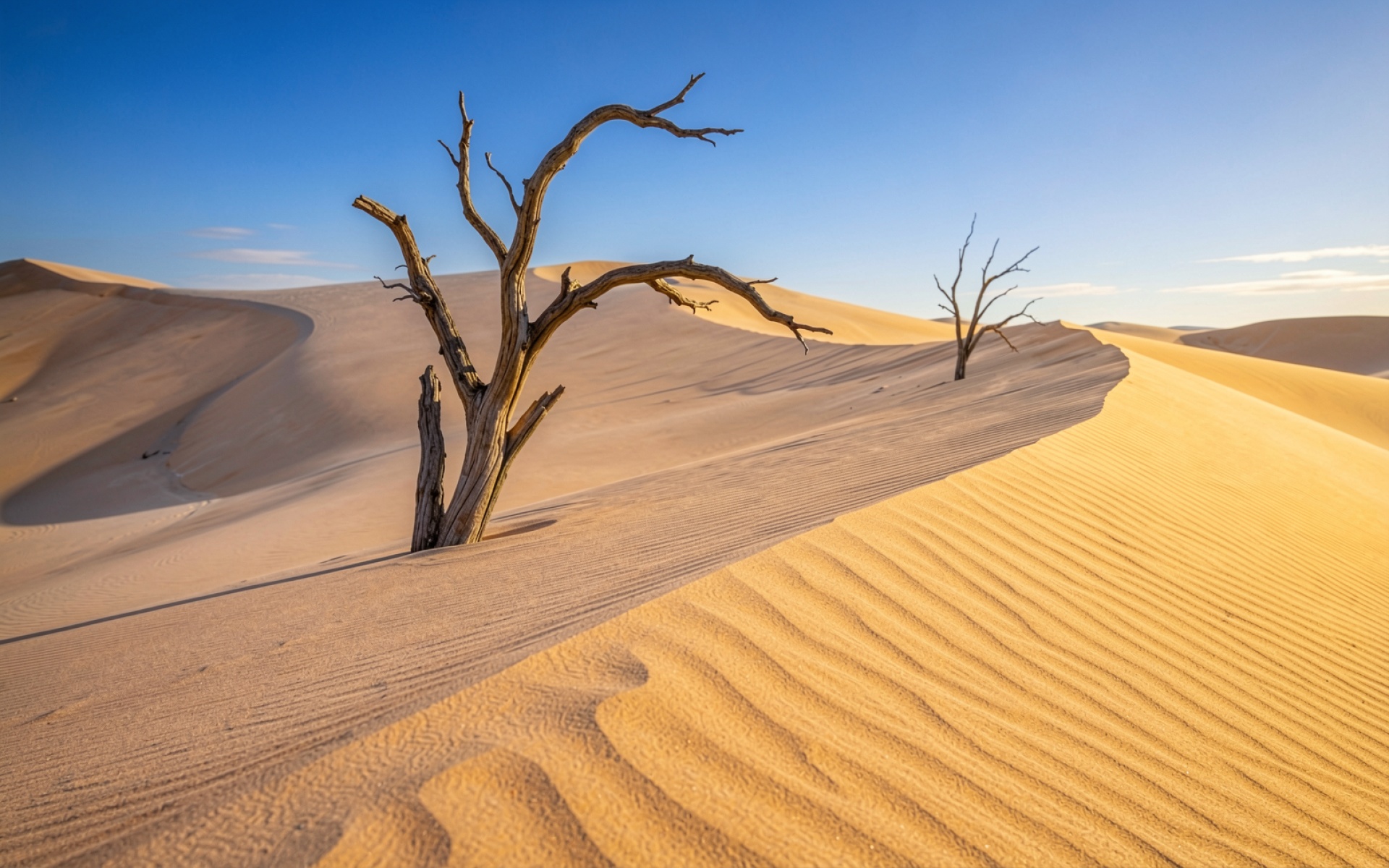 Сухие деревья в желтых песчаных дюнах