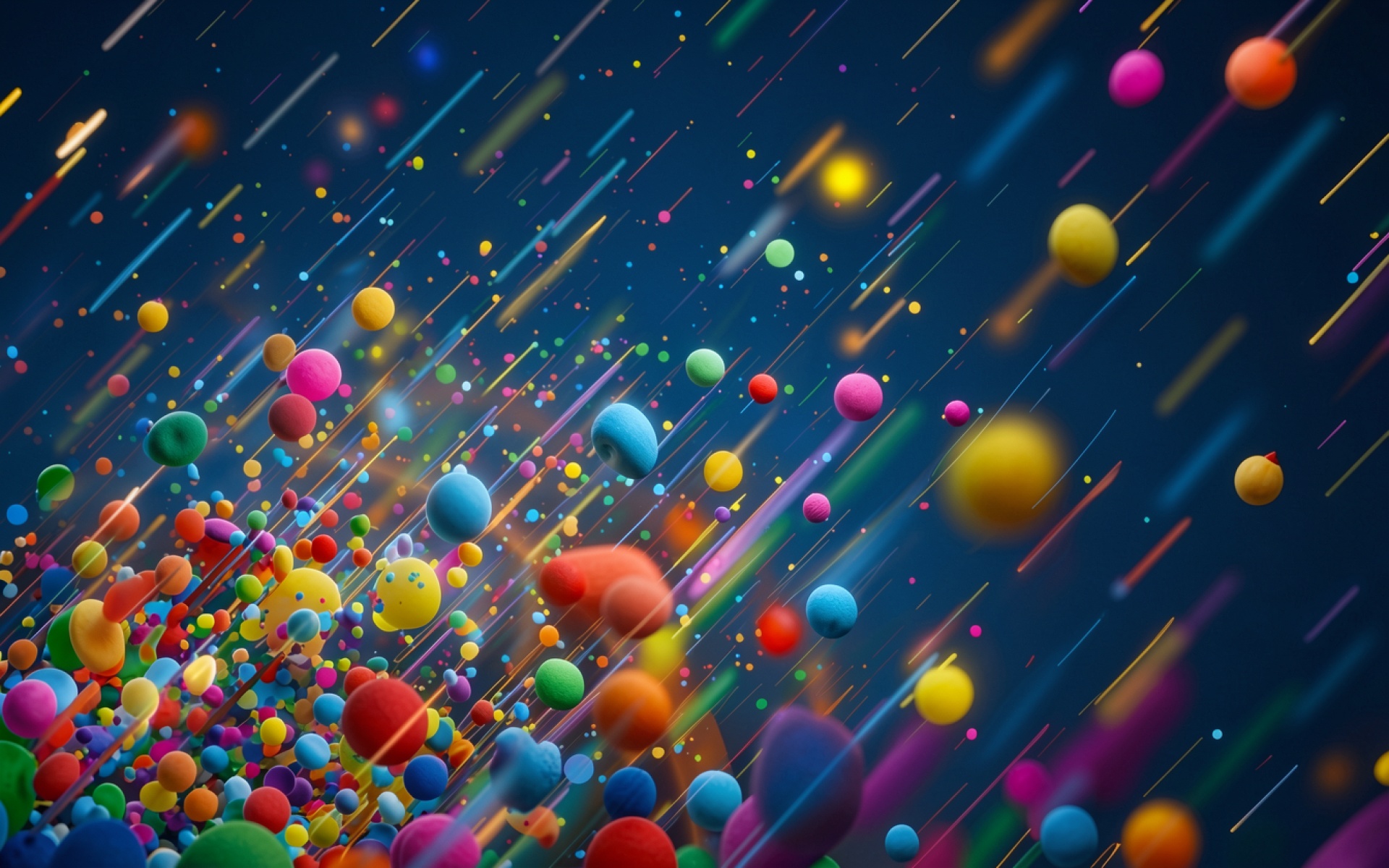 Разноцветные сферы в темном космическом пространстве
