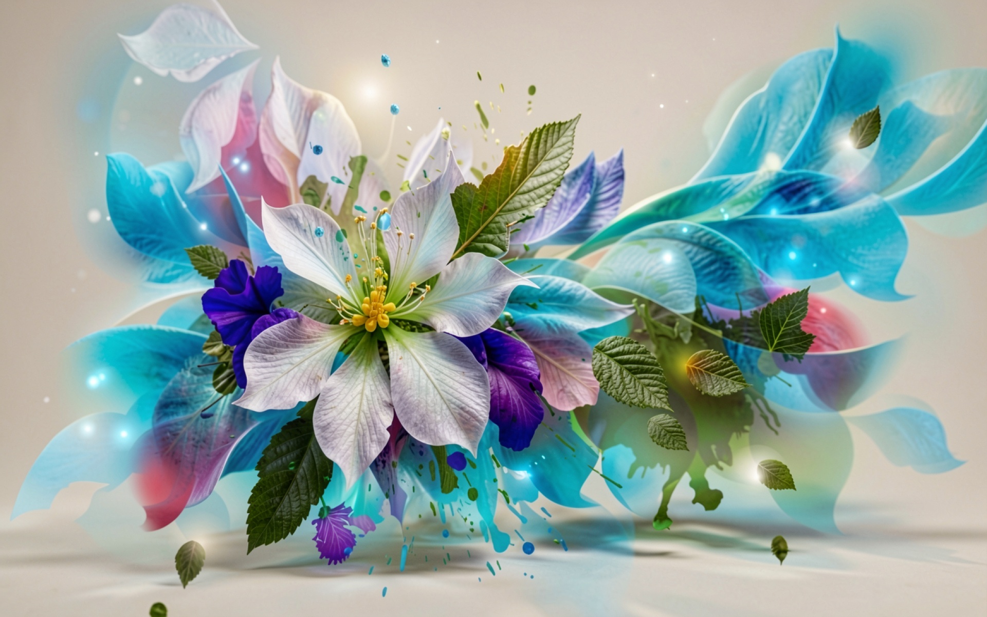 Белый цветок в голубых лепестках сюрреализм