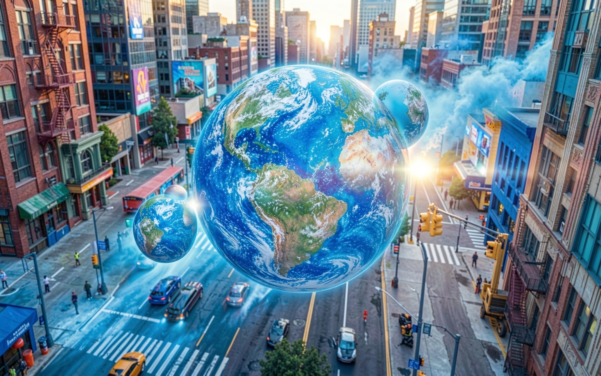 Планета Земля в центре мегаполиса сюрреализм