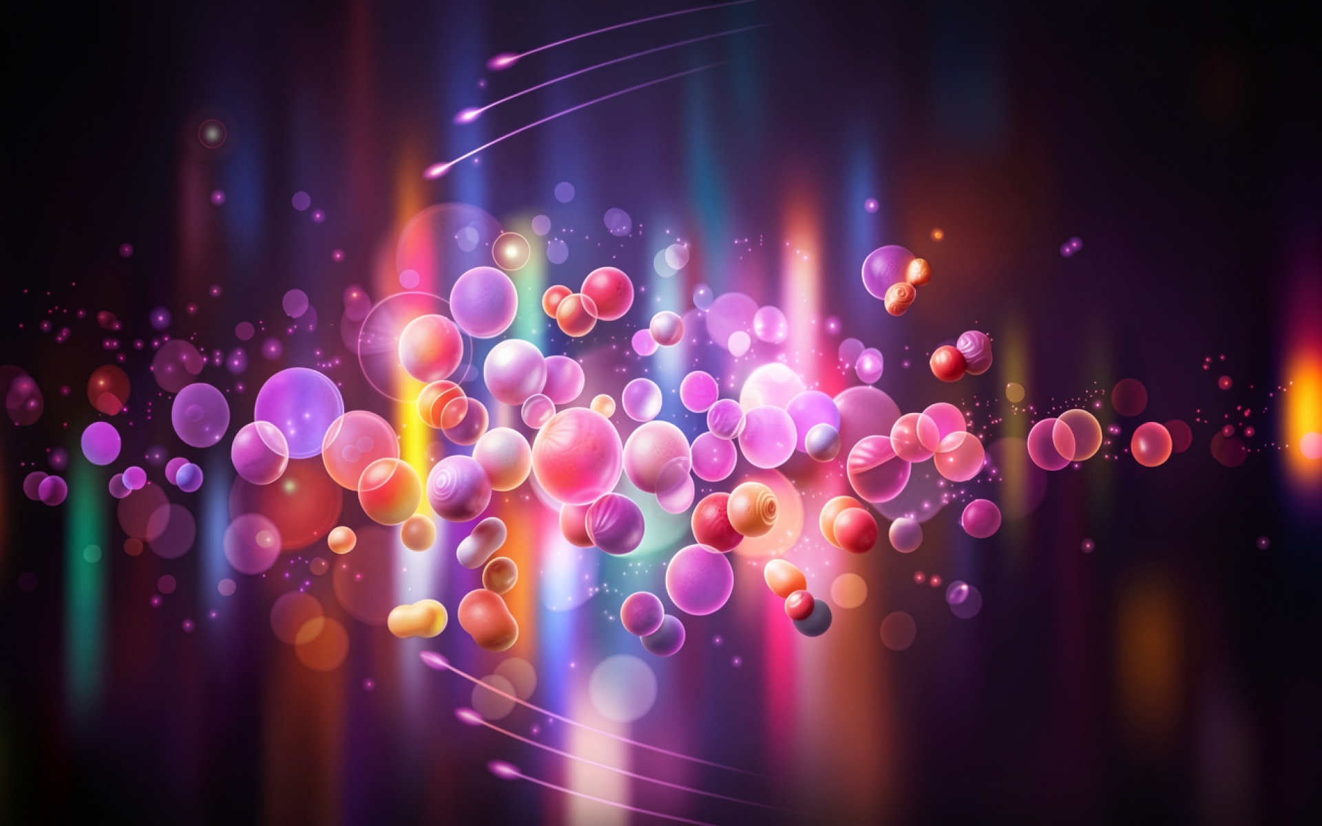 Абстрактные розовые сферы на темном неоновом фоне