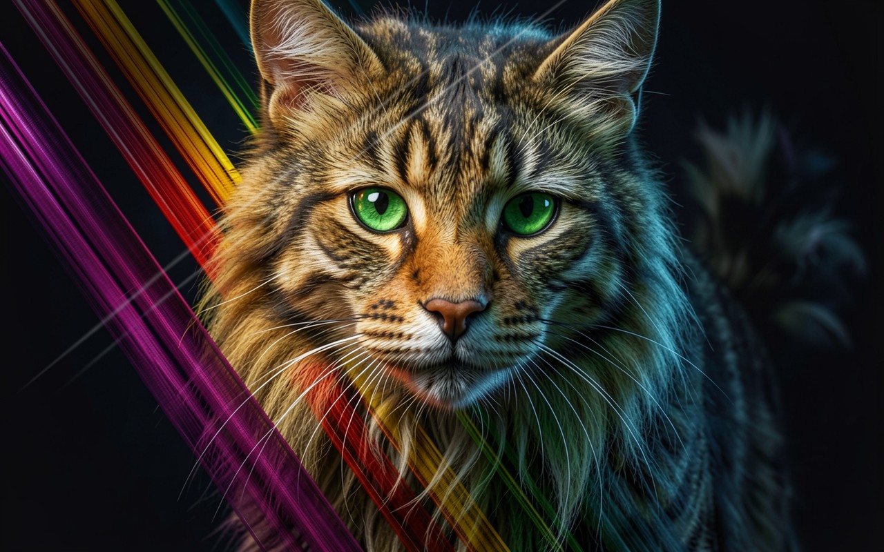 Рыжий полосатый кот на темном фоне
