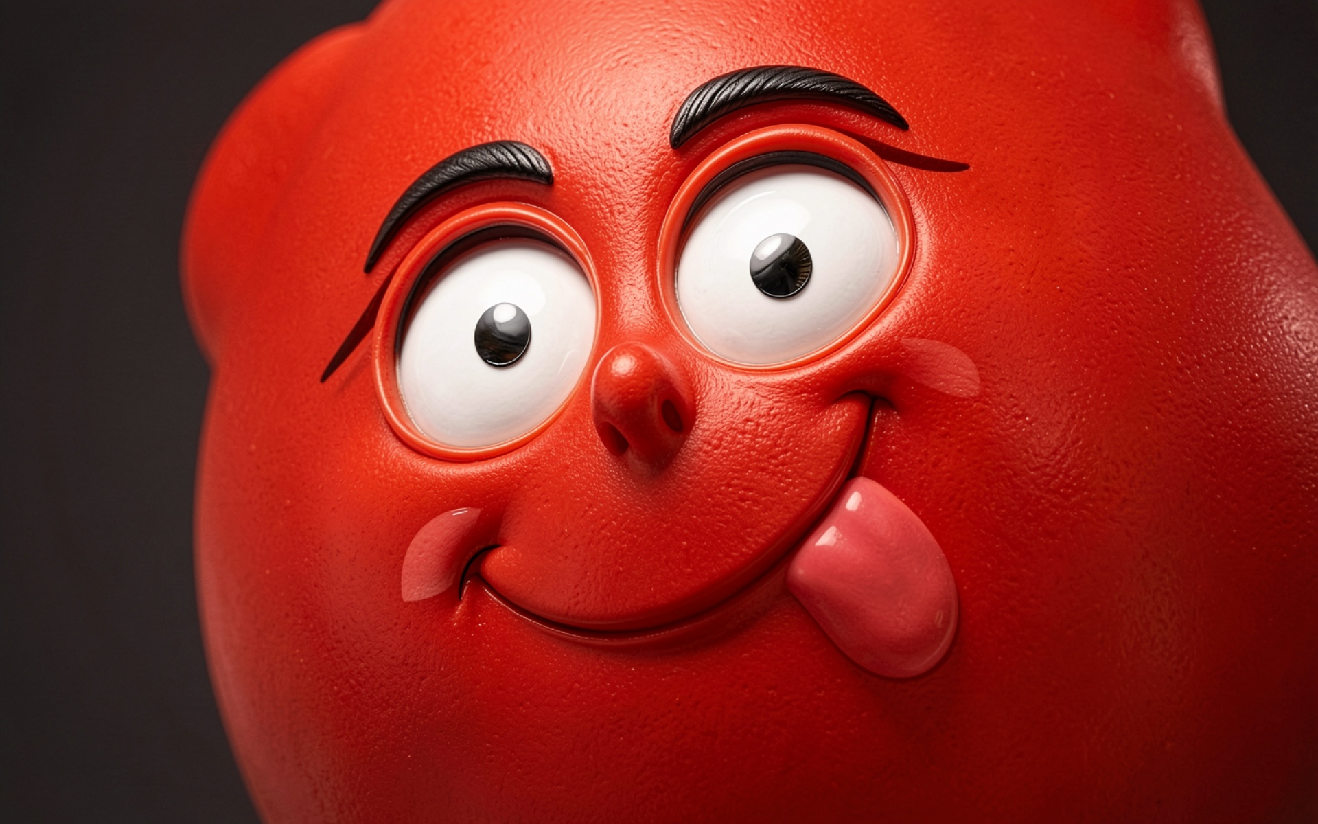 Красный персонаж с высунутым языком на темном фоне