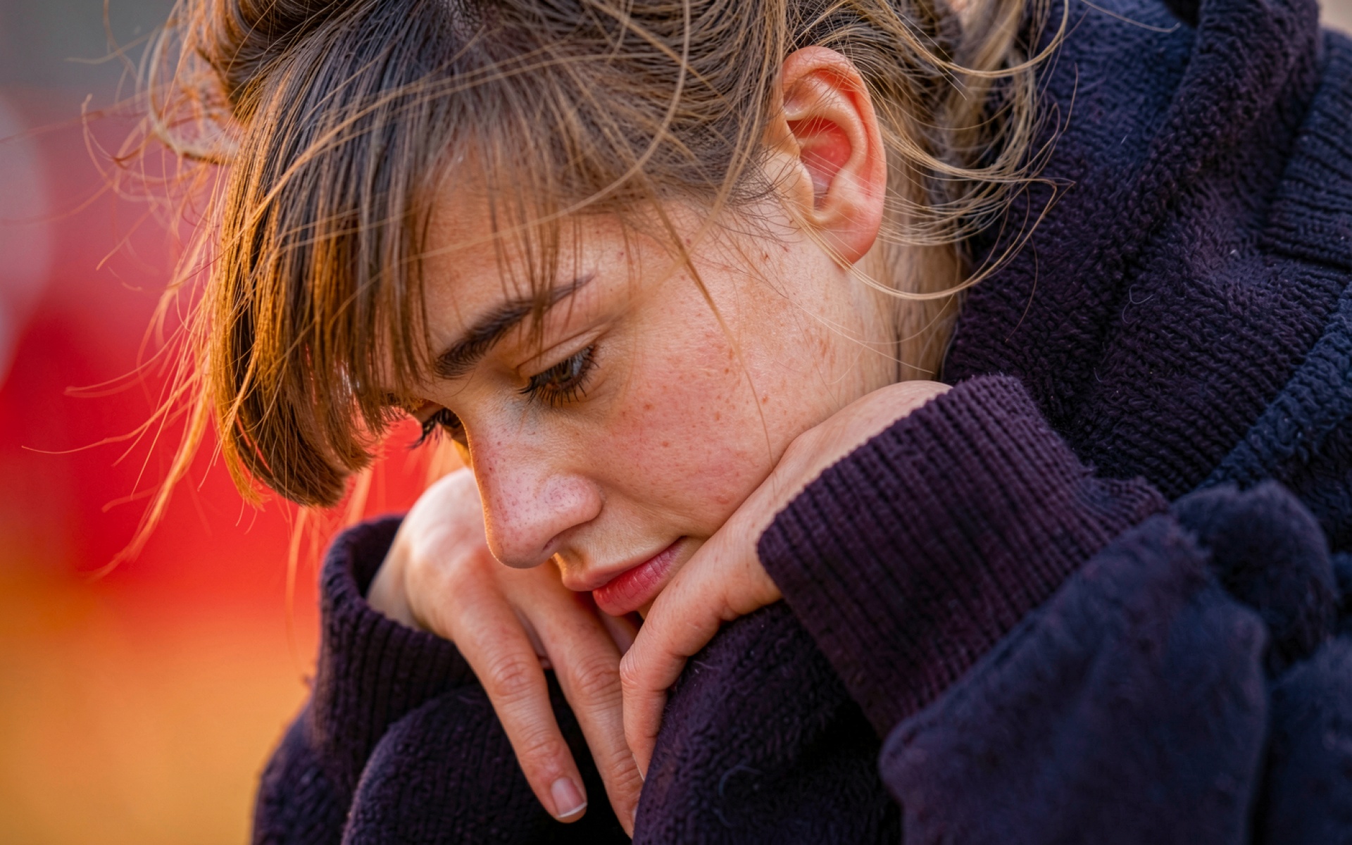 Портрет грустной девушки в темном свитере