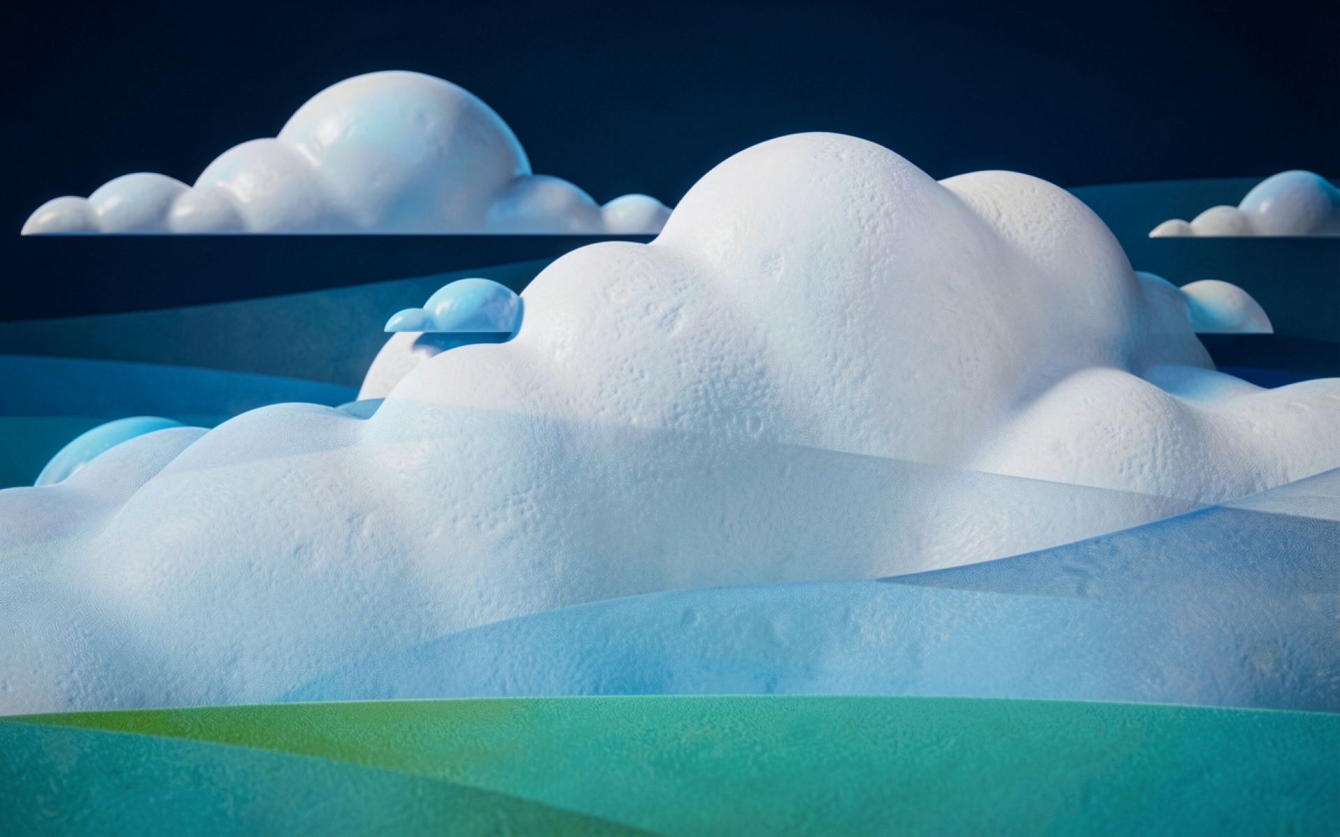 Белые объемные облака в темно-синем пространстве