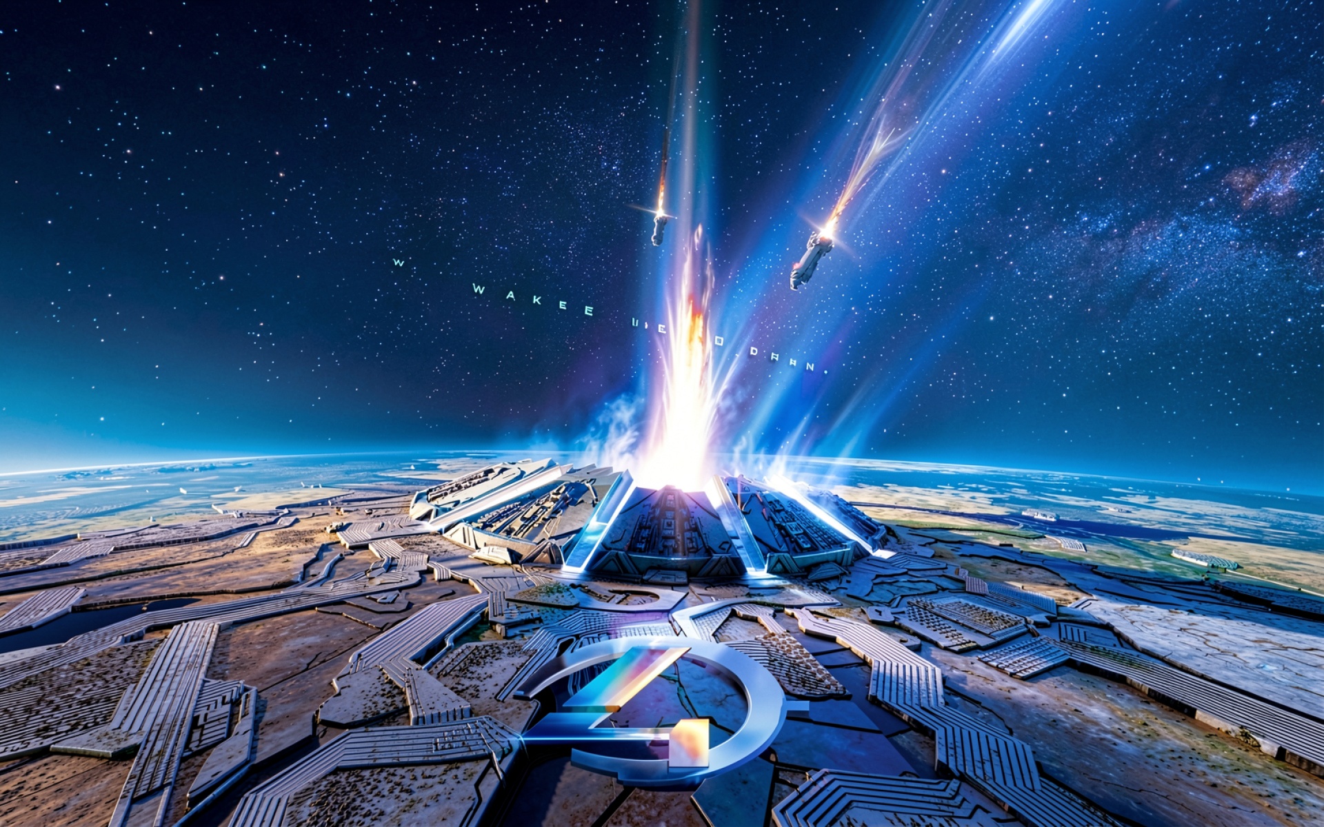 Космическая станция в синих тонах с вспышкой