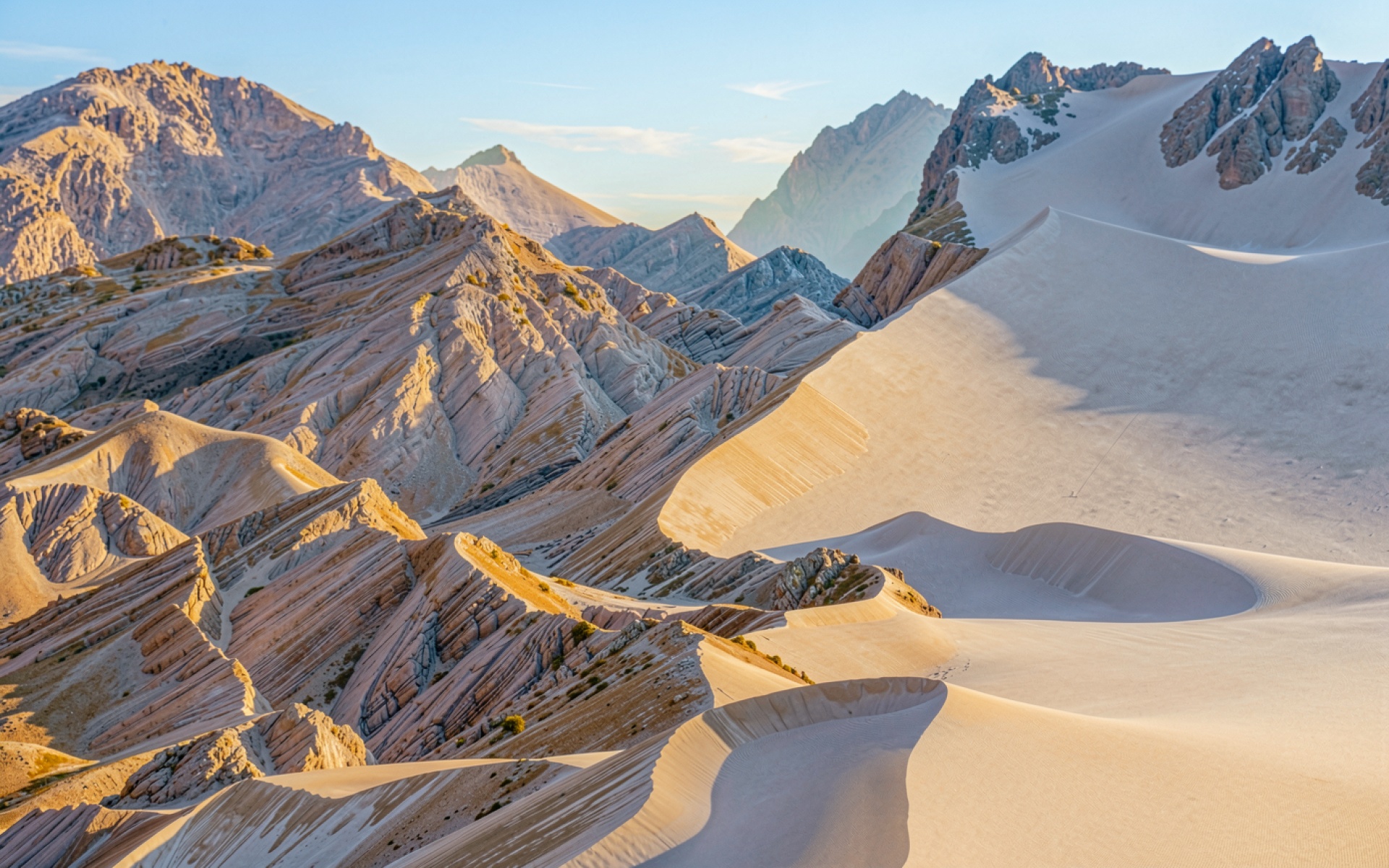 Песчаные дюны и скалы в теплых тонах