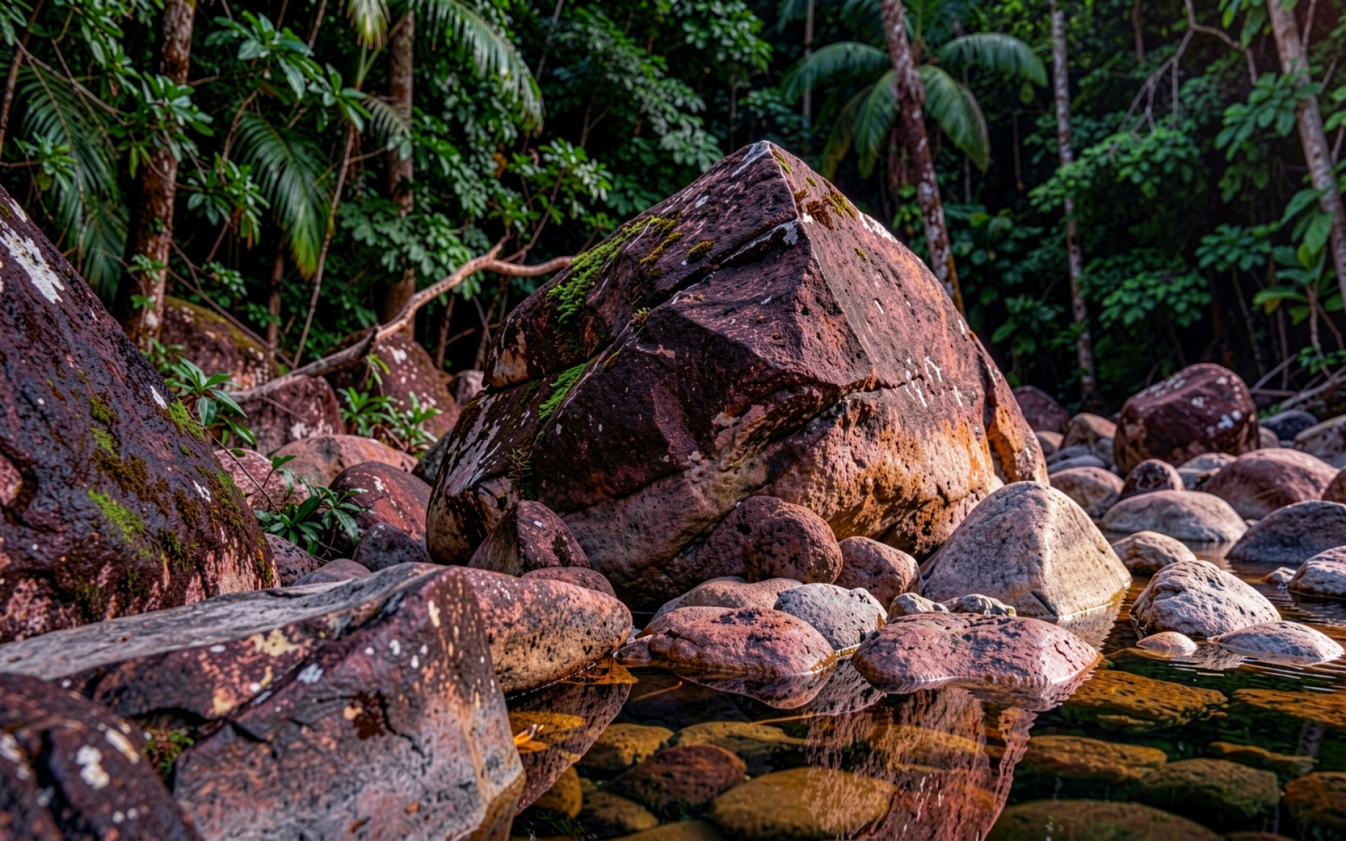 Тропический ручей красный камень джунгли