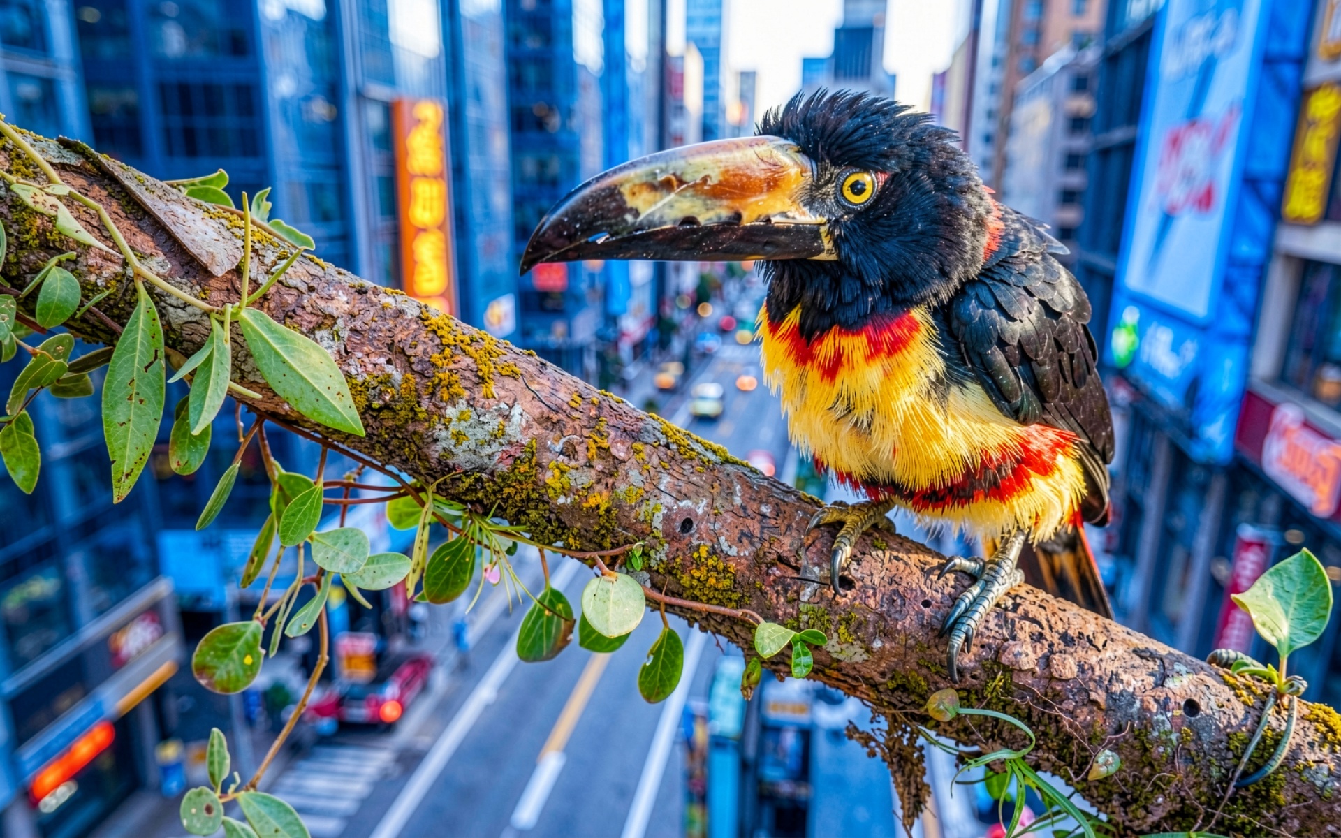 Тукан черный желто-красный в городе