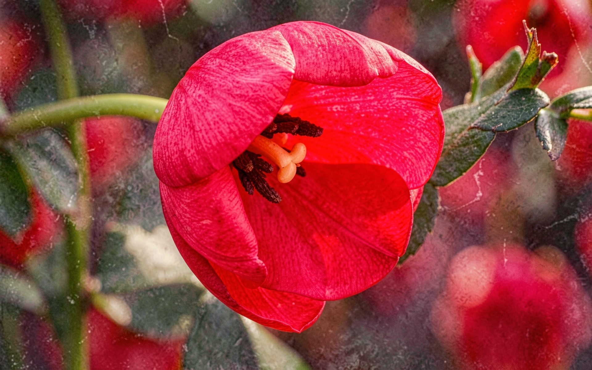 Красный тюльпан макросъемка природный фон