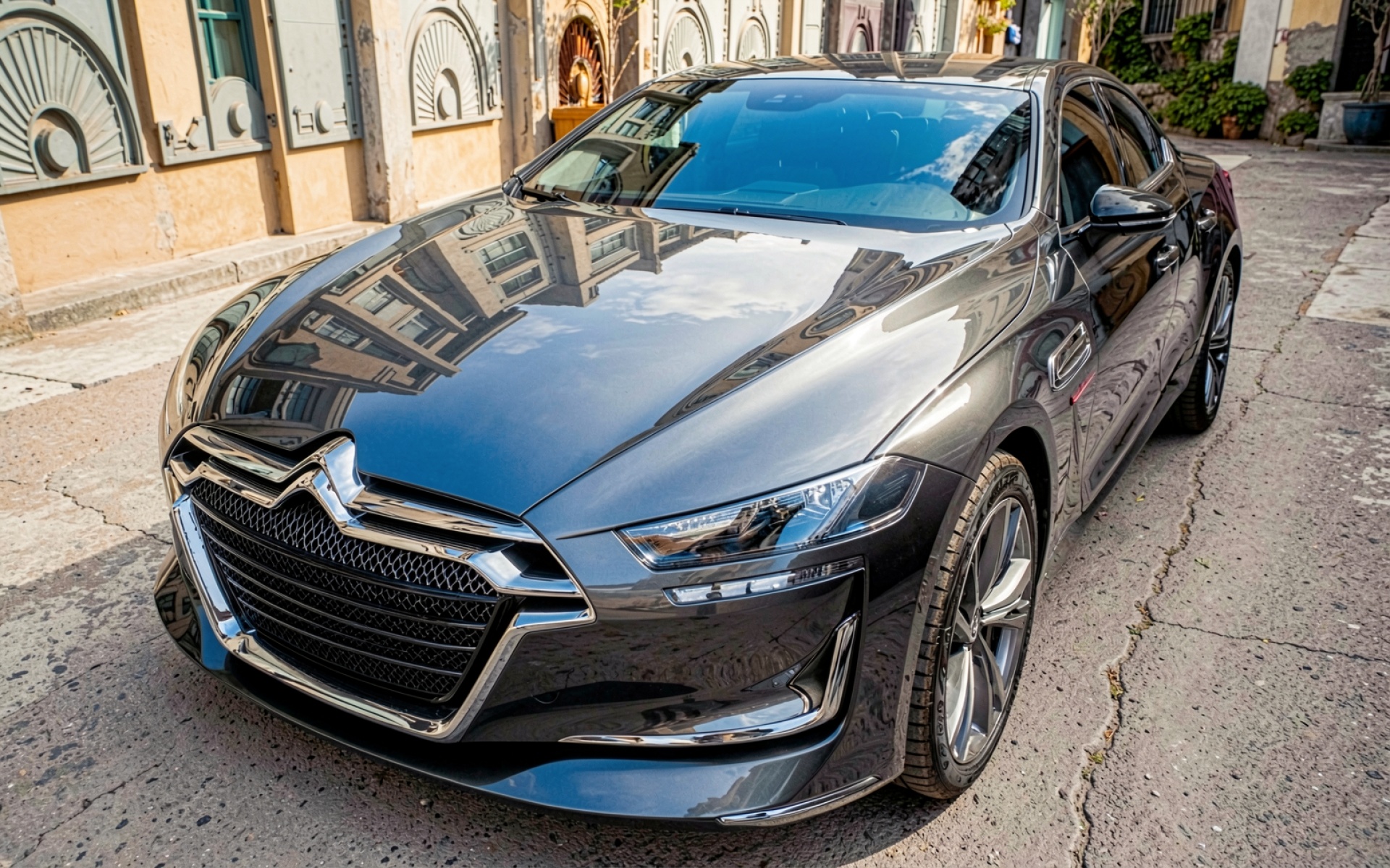 Серый автомобиль Citroen в узком европейском переулке