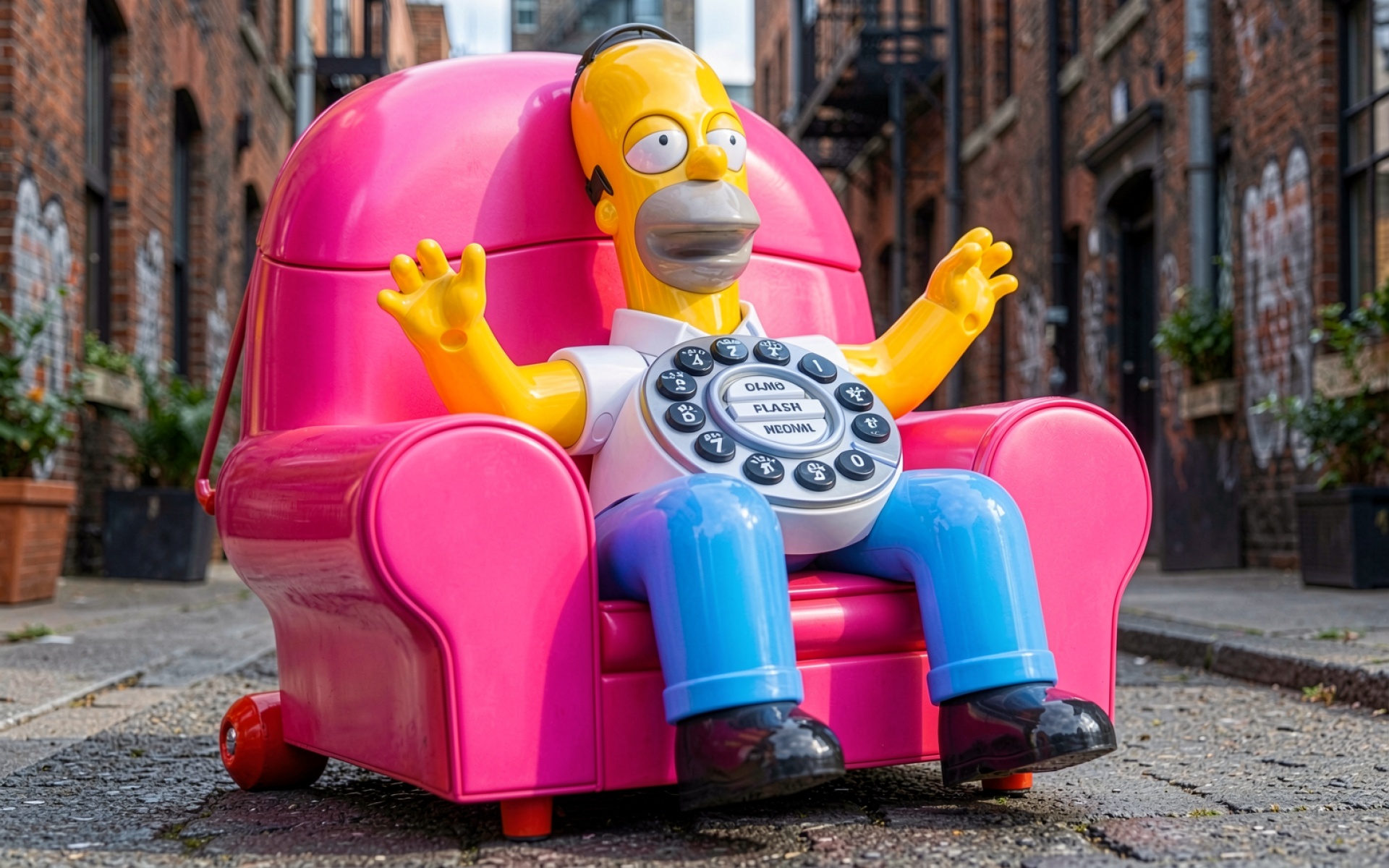 Фигурка Гомера Симпсона в розовом кресле на улице